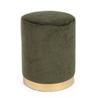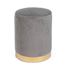 Pouf modello Lucilla in velluto, realizzato con struttura in legno di pino e MDF, base in acciaio verniciato a polvere epossidica colore oro