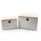 Set 2 Pouf rettangolari con seduta imbottita e struttura in legno arredamento moderno