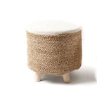 Pouf tondi con seduta in corda e piedini in legno per arredamento moderno