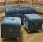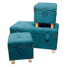 Set 3 Pouf contenitori in velluto per arredamento moderno Bauli con piedi in legno h 33 cm