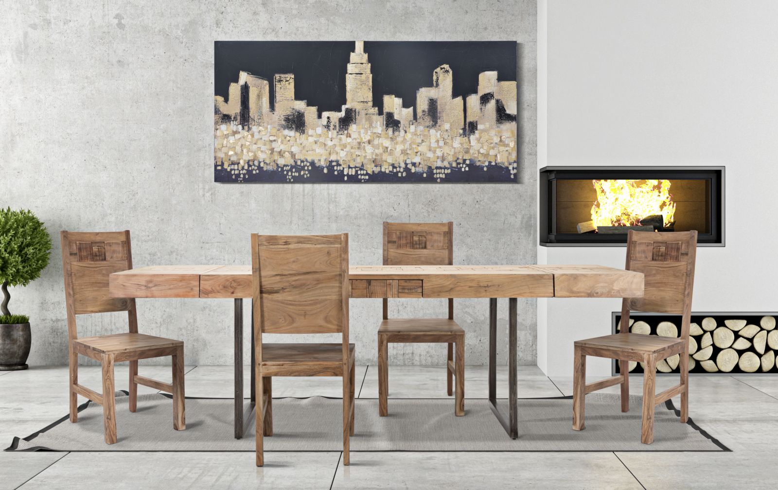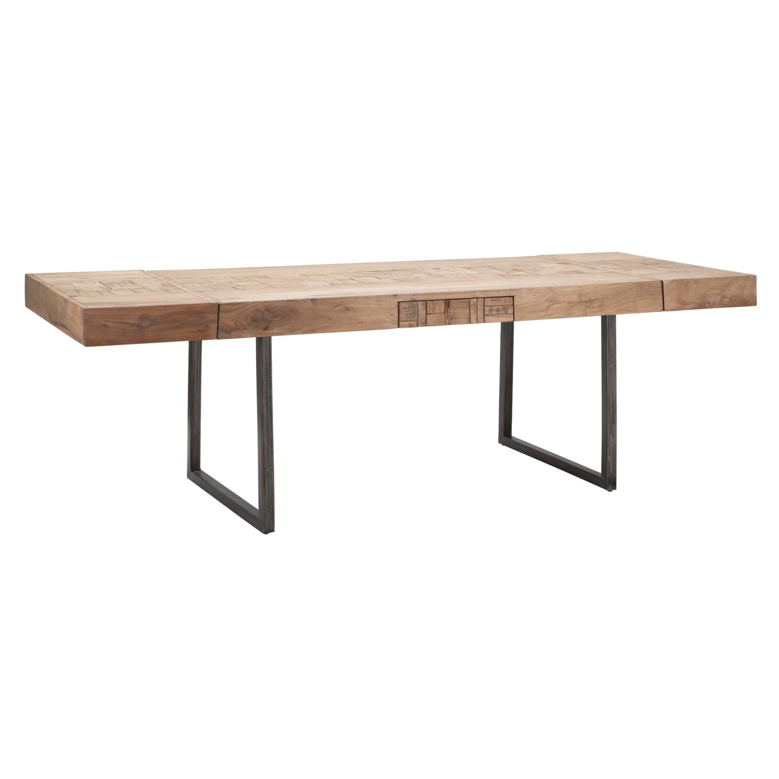 Realizzato con legno di acacia, il tavolo presenta una superficie naturale e calda, evidenziando le caratteristiche venature del legno e aggiungendo un tocco di eleganza agli interni.