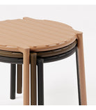 Reinterpretazione in chiave contemporanea del tema della doga, questo pratico tavolino completamente riciclabile.