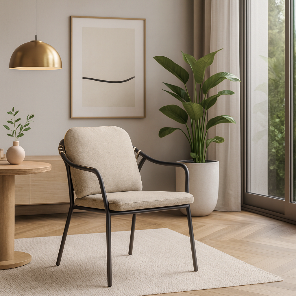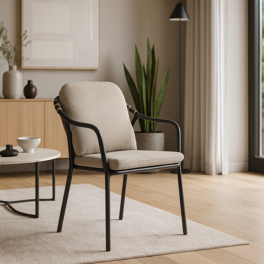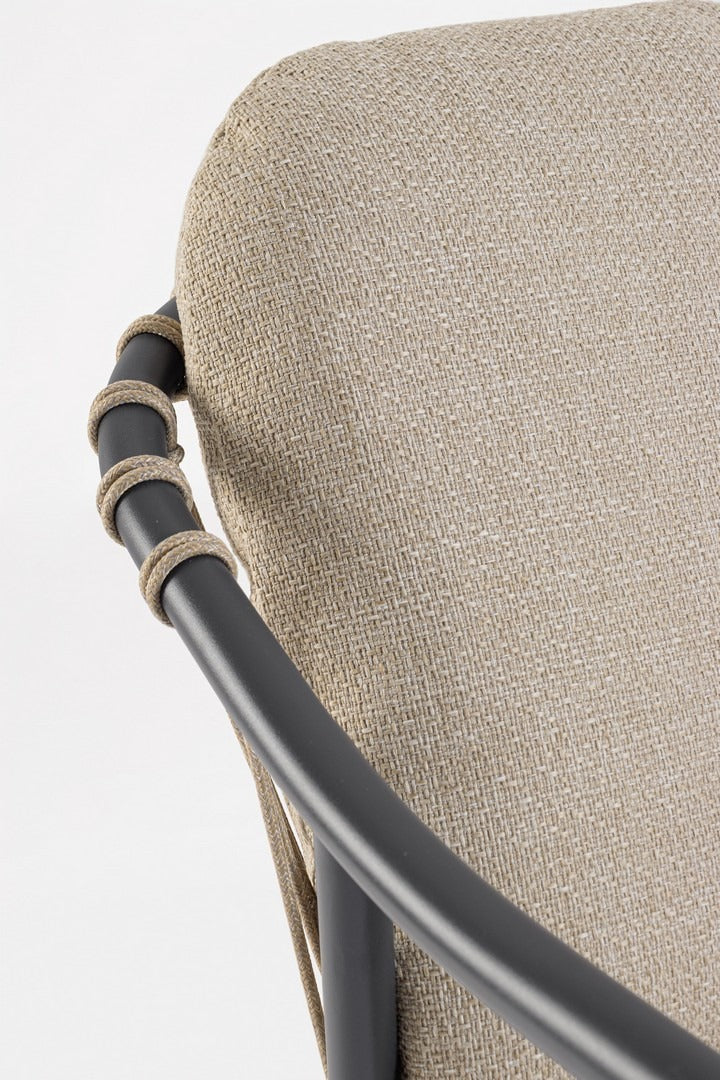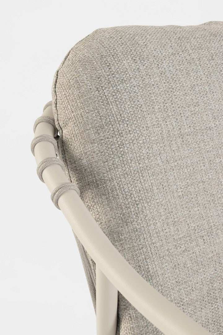 La combinazione tra la struttura in alluminio e l’intreccio in corda Olefin conferisce un aspetto raffinato e attuale, mantenendo al tempo stesso leggerezza e resistenza.
