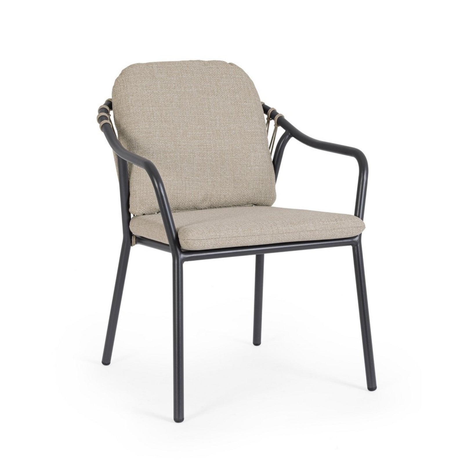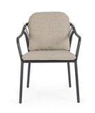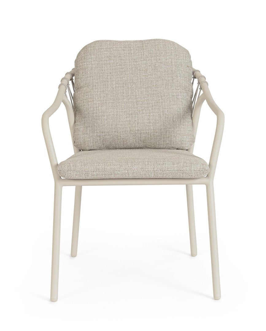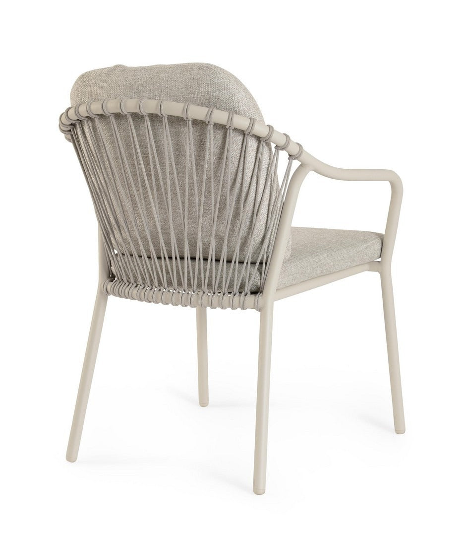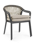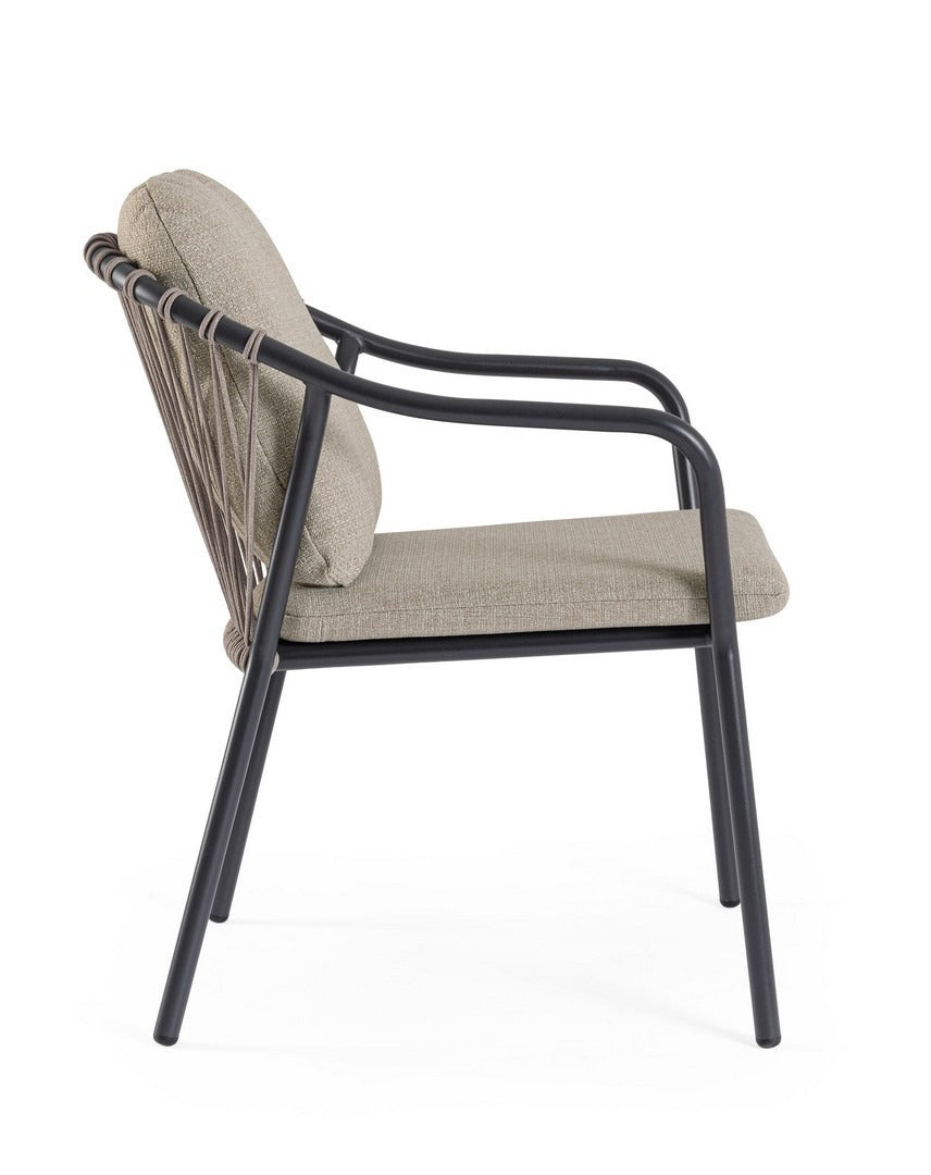 Sedia "Edvige" con braccioli e struttura in alluminio, con intreccio in corda, ideale per interno ed esterno
