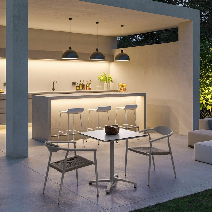 La combinazione tra struttura in alluminio e seduta in fibra sintetica garantisce comfort quotidiano e una lunga durata nel tempo, anche in presenza di umidità o sbalzi climatici.