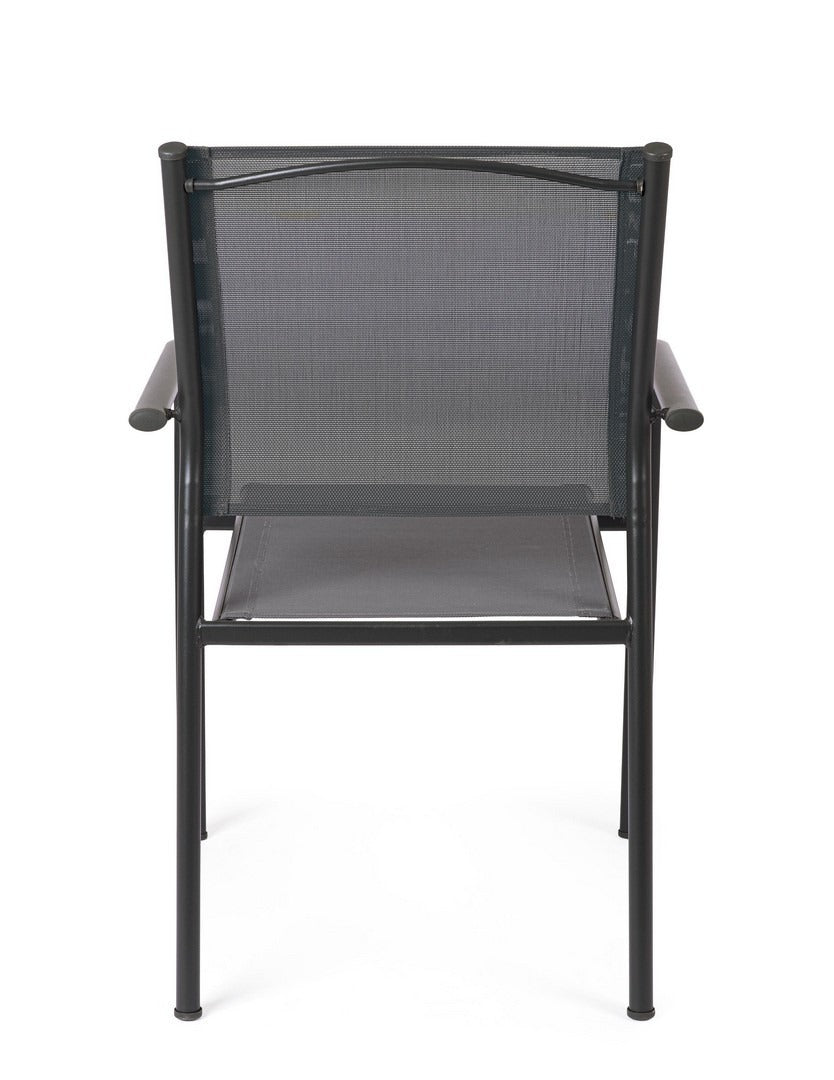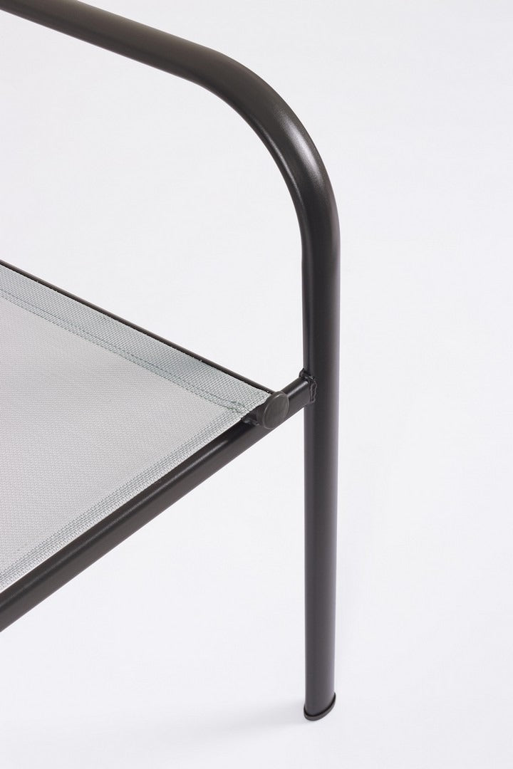 La combinazione tra struttura in acciaio e seduta in textilene garantisce una seduta confortevole, traspirante e adatta all’uso quotidiano.