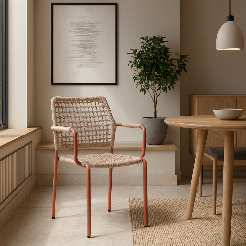 Che venga utilizzata all'interno, in ambienti come soggiorni, sale da pranzo o uffici, o all'esterno, su terrazzi, giardini o balconi, la sedia "Rajada" rappresenta una scelta ideale per chi cerca un prodotto pratico, resistente e dall'aspetto raffinato, capace di aggiungere un tocco di eleganza a qualsiasi spazio.