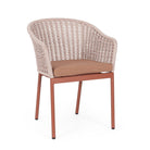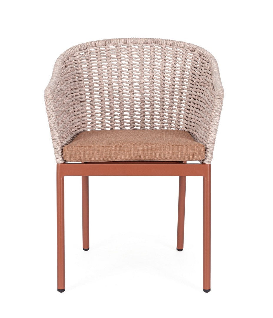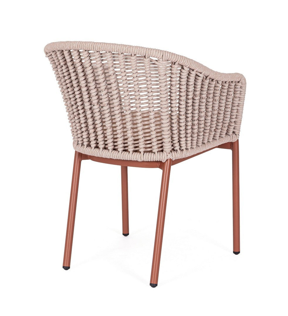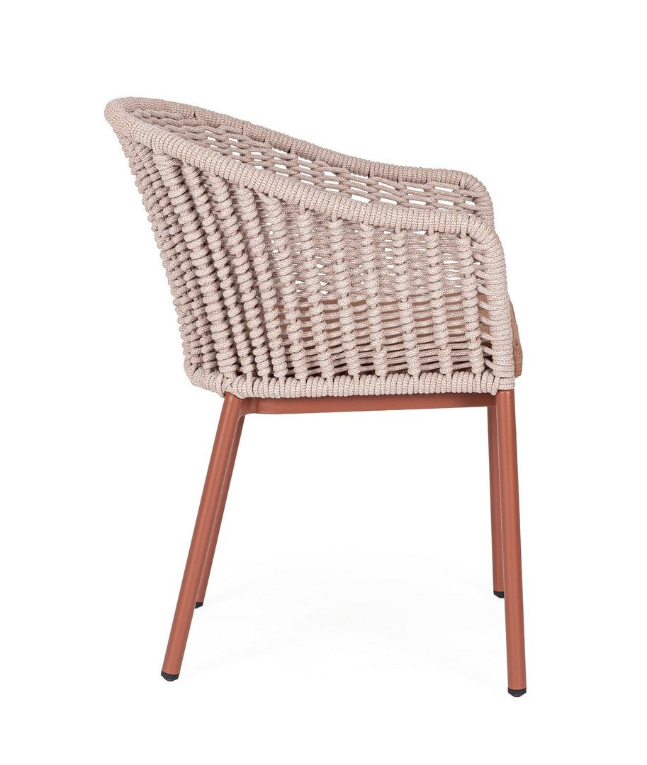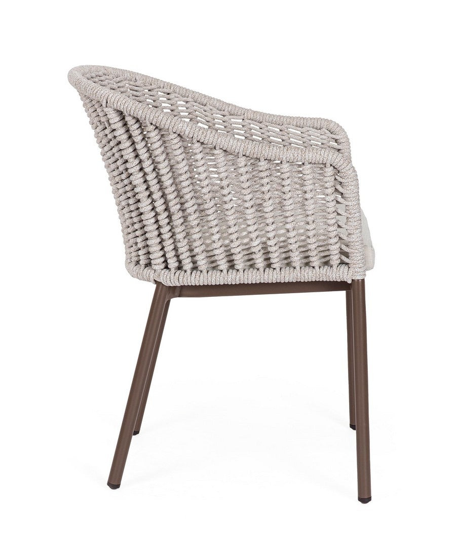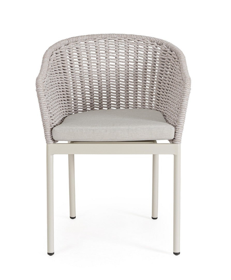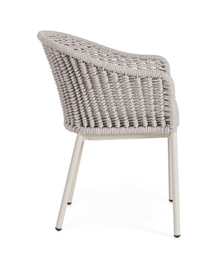 Sedia "Salines" struttura in alluminio, con braccioli, intreccio in corda, per interni ed esterni