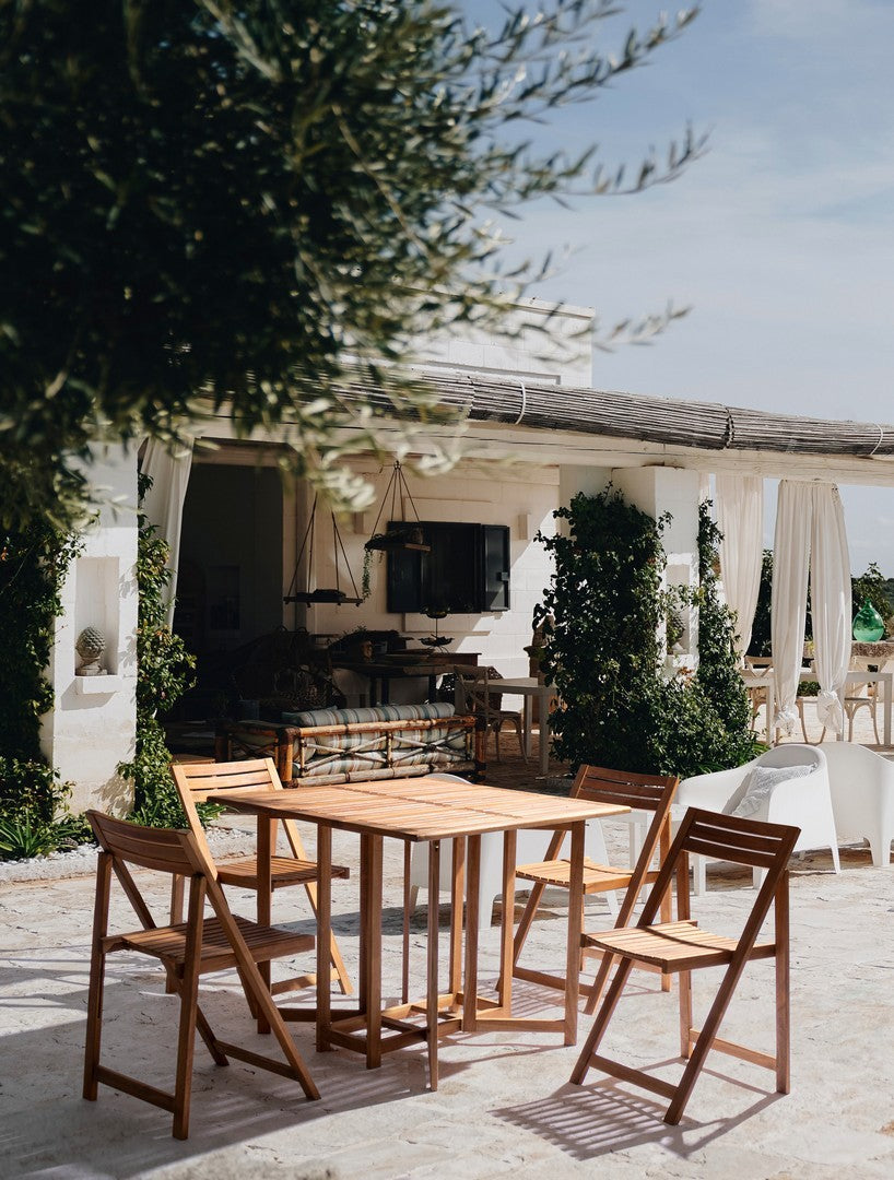 Il set comprende un tavolo e quattro sedie, tutte realizzate in legno di acacia con una finitura ad olio. La finitura ad olio è progettata per proteggere il legno dall'esposizione alle intemperie e mantenerlo in buone condizioni per un uso prolungato.