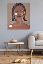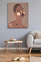 La stampa su tela presenta un'immagine di una donna tribale, che può essere realizzata con diverse tecniche artistiche, come disegno a mano, pittura digitale o manipolazioni fotografiche.