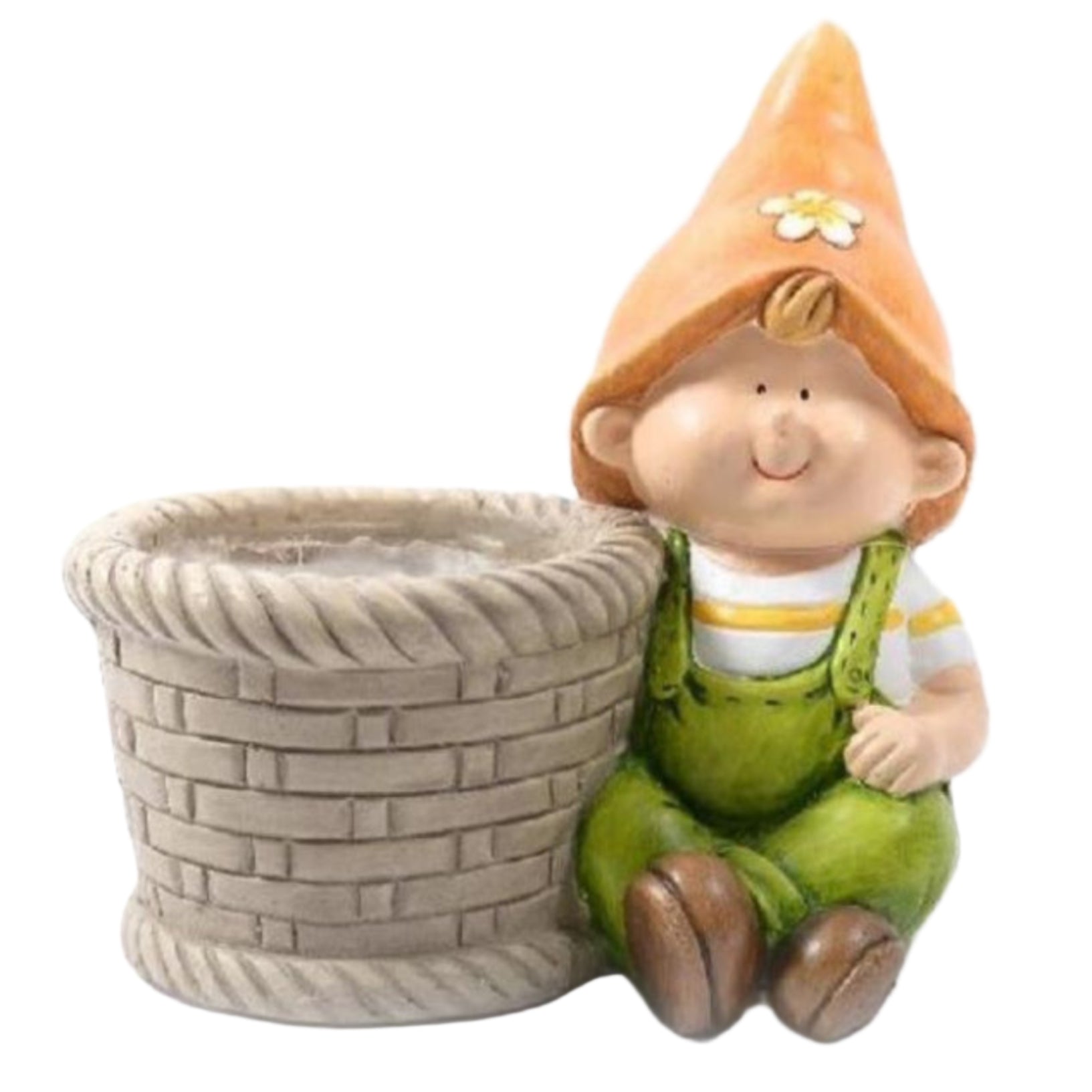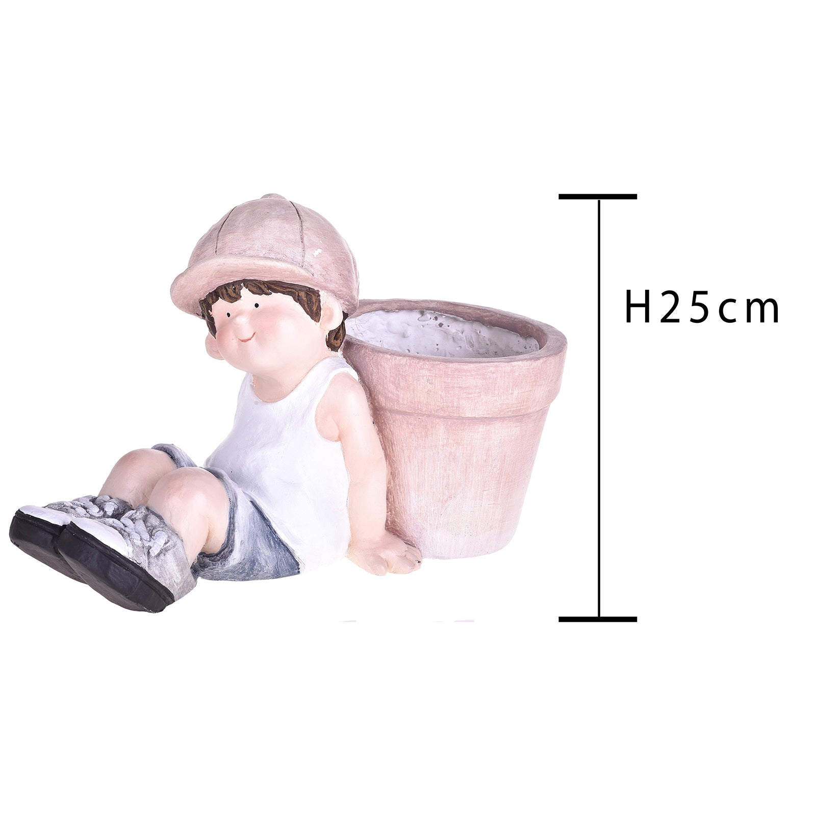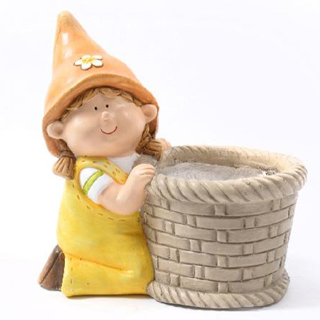 Nani da giardino per esterno in poliresina statua Livia con portavaso h 32 cm