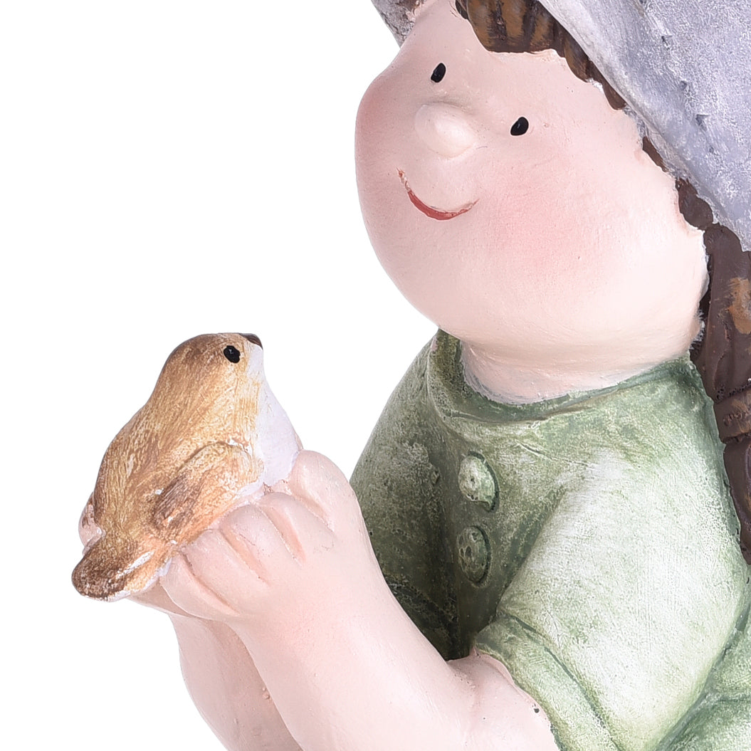 Statuetta di bambina con uccellino decorazione per esterno e giardino da 23 cm