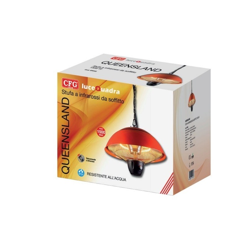 Lampada alogena riscaldante a sospensione da utilizzare nel patio, nella tenda da sole, sotto l'ombrellone, all'interno di un tendone per feste o in un gazebo.