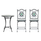 Set "Positano" Tavolino tondo e poltrone con decoro in ceramica per giardino veranda