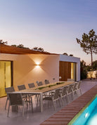 Il tavolo allungabile "Cameron" è un'aggiunta elegante e moderna alla tua casa. La struttura in alluminio verniciato a polvere (poliestere) garantisce resistenza e durata, mentre il piano in teak conferisce un tocco di eleganza naturale. La funzione di allungamento telescopico consente di accomodare comodamente un numero maggiore di ospiti, mentre le prolunghe esterne con alloggio sotto il piano rendono il tavolo compatto quando non in uso. La viteria in acciaio inossidabile assicura una stabilità affidabile, mentre i piedini in plastica regolabili ti permettono di adattare la tavola alla tua esigenza. Le gambe devono essere assemblate.