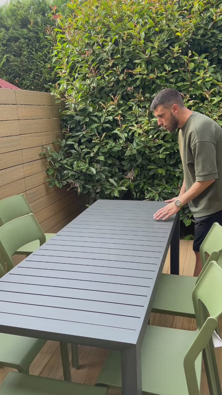 Questo tavolo da giardino allungabile può ospitare comodamente fino a dieci Persone.