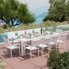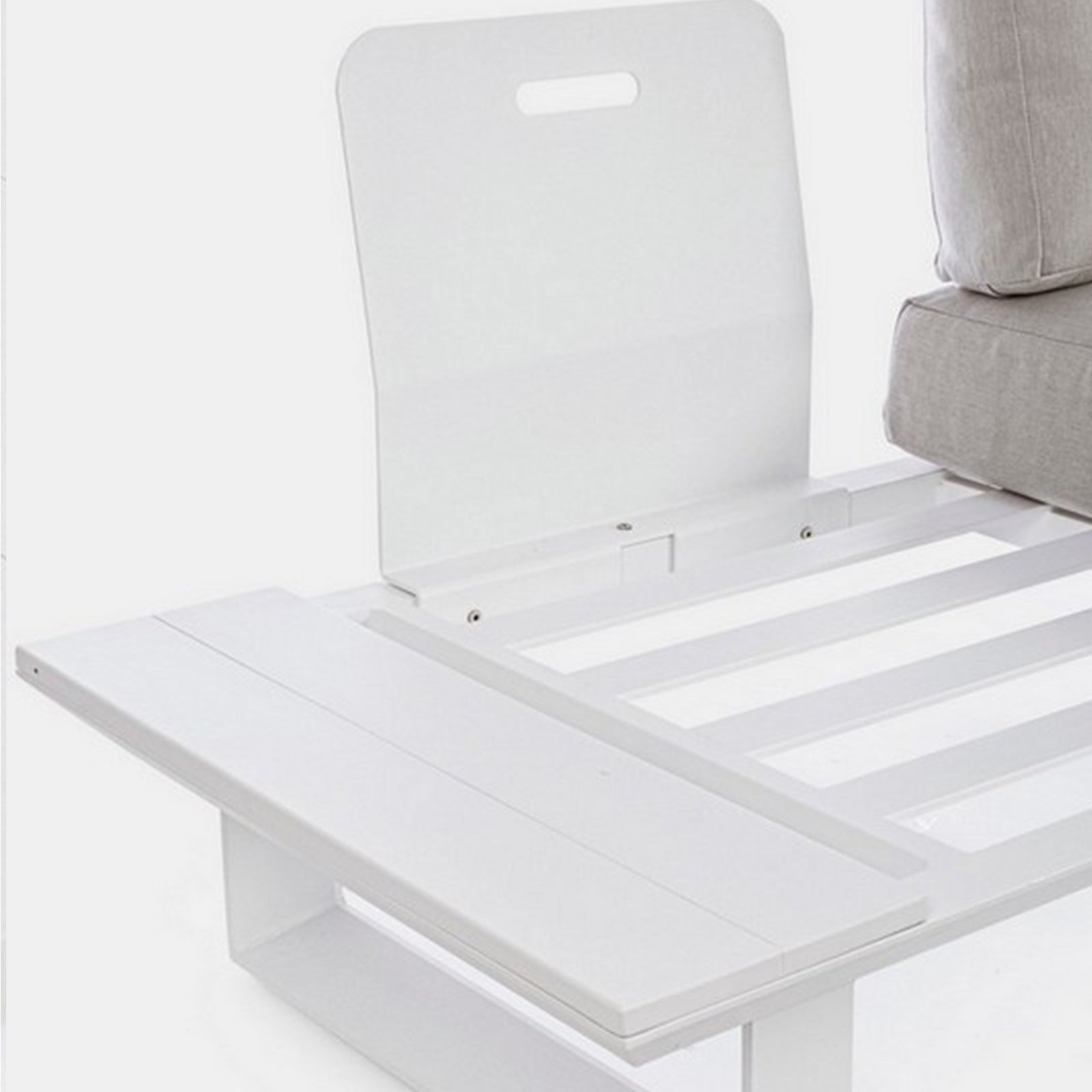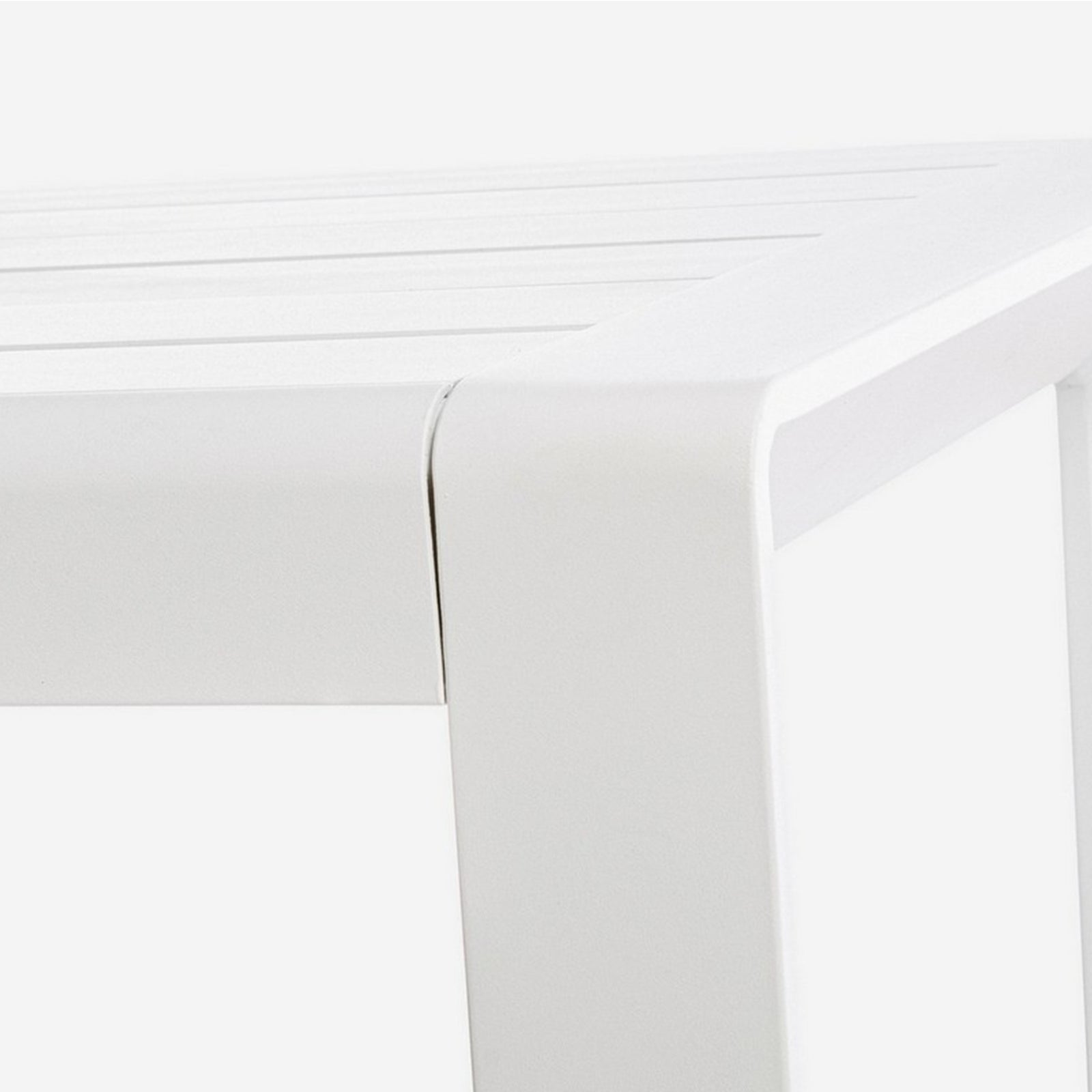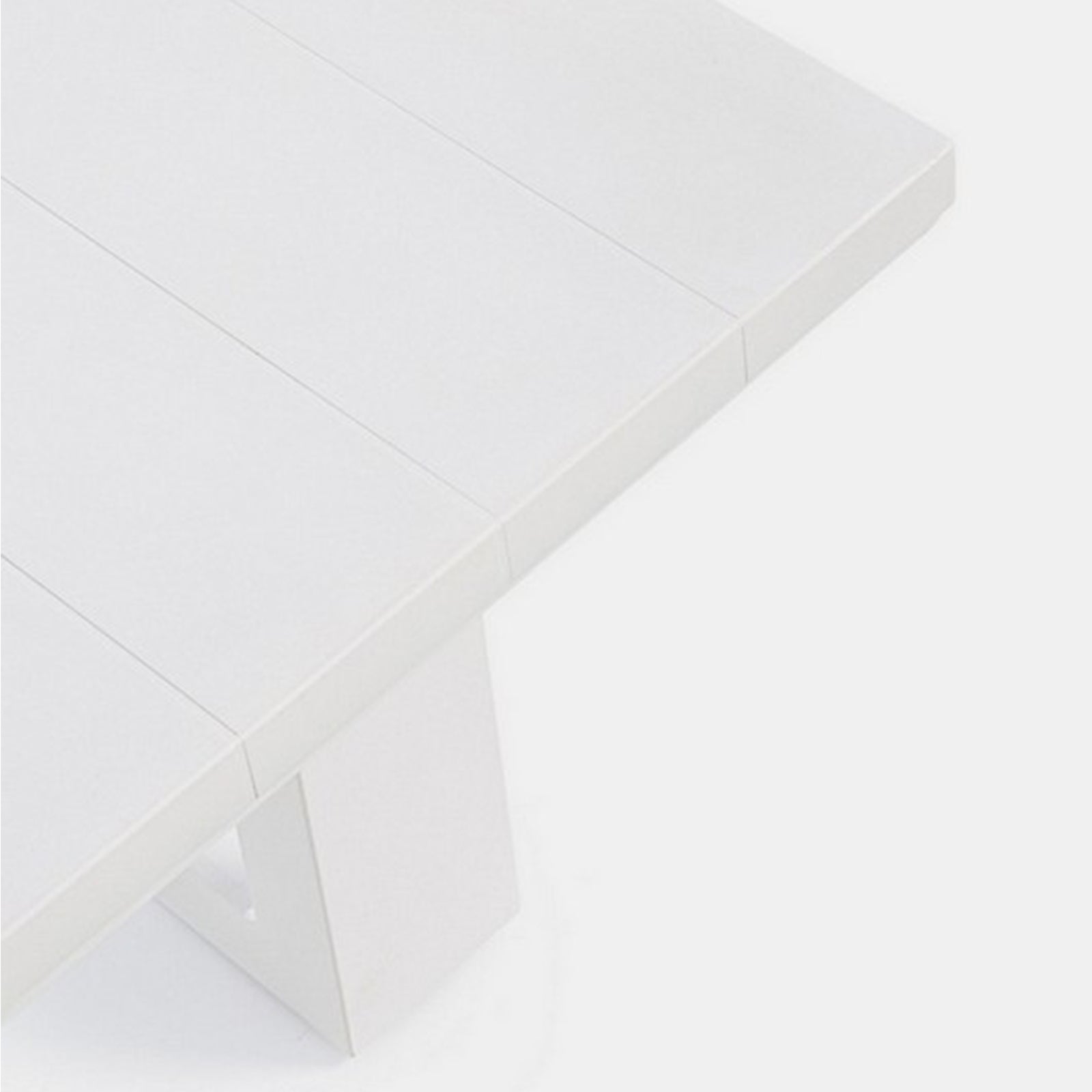 Il tavolo allungabile "Kiplin" rappresenta un'elegante soluzione per arredare spazi esterni, grazie alla sua struttura in alluminio verniciato a polvere bianco.
