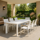 Questo tavolo, realizzato interamente in alluminio, offre una soluzione durevole e resistente alle intemperie, ideale per l'uso esterno.