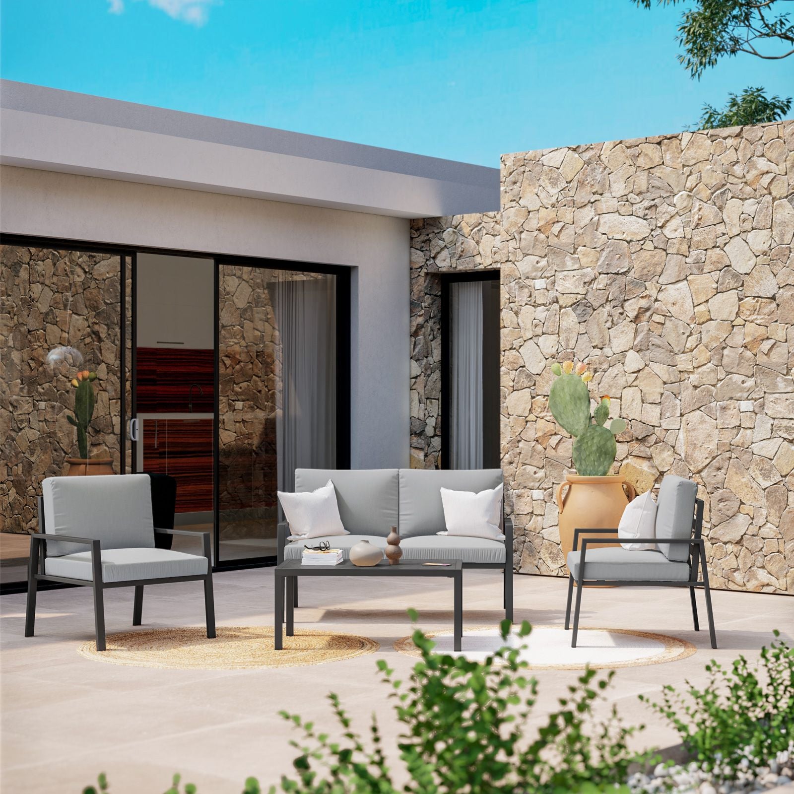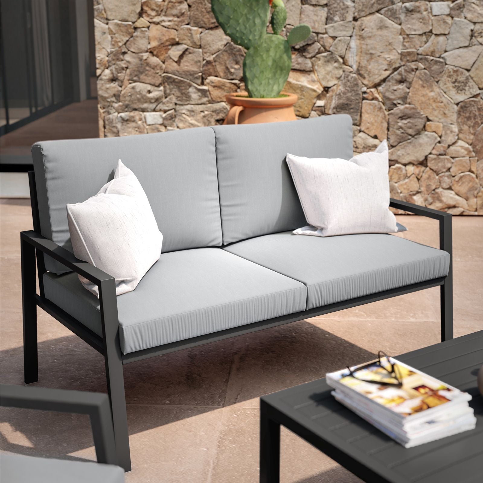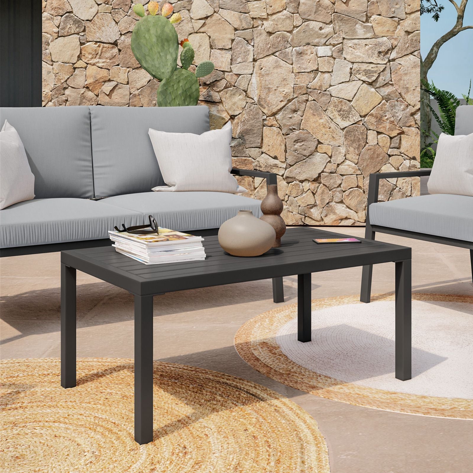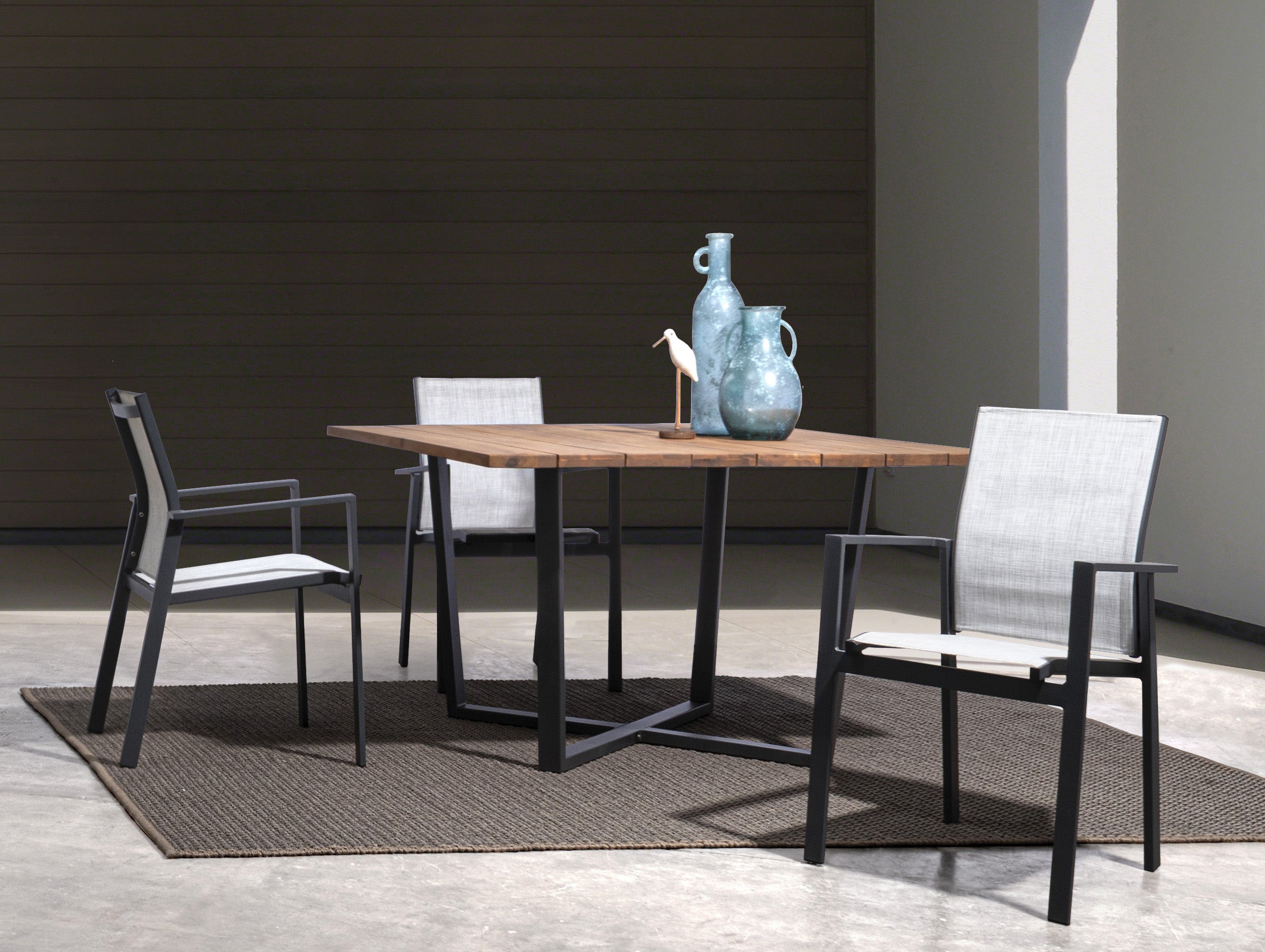 Tavolo fisso "Oslo" in legno di Acacia con piedi in metallo da giardino