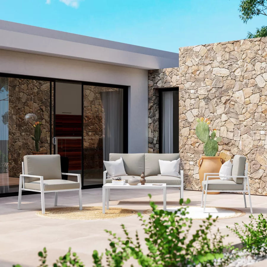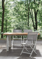 Tavolo per esterni realizzato interamente in legno di Acacia color naturale.