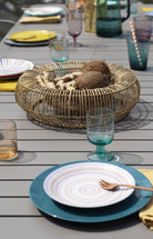 - Materiali di Qualità e Sostenibilità: Con una struttura in alluminio verniciato a polveri e una resina riciclabile, il tavolo Alloro unisce stile, funzionalità e rispetto per l’ambiente.