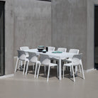 Il tavolo è stato progettato con un perfetto sistema di aggancio rapido delle prolunghe: una volta allungato RIO è in tutto e per tutto un lungo tavolo fisso senza alcun inestetismo o intralcio.