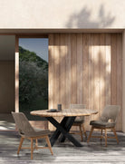 Tavolo ovale "Palmdale" con piano in legno teak, gambe in alluminio, per esterno
