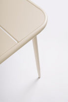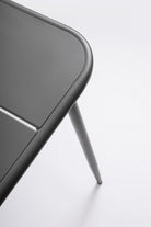 La finitura verniciata a polvere non solo conferisce un aspetto moderno e pulito al tavolo, ma assicura anche una protezione ottimale contro ruggine, graffi e scolorimento, rendendolo ideale per l'uso all'aperto senza compromettere l'estetica.