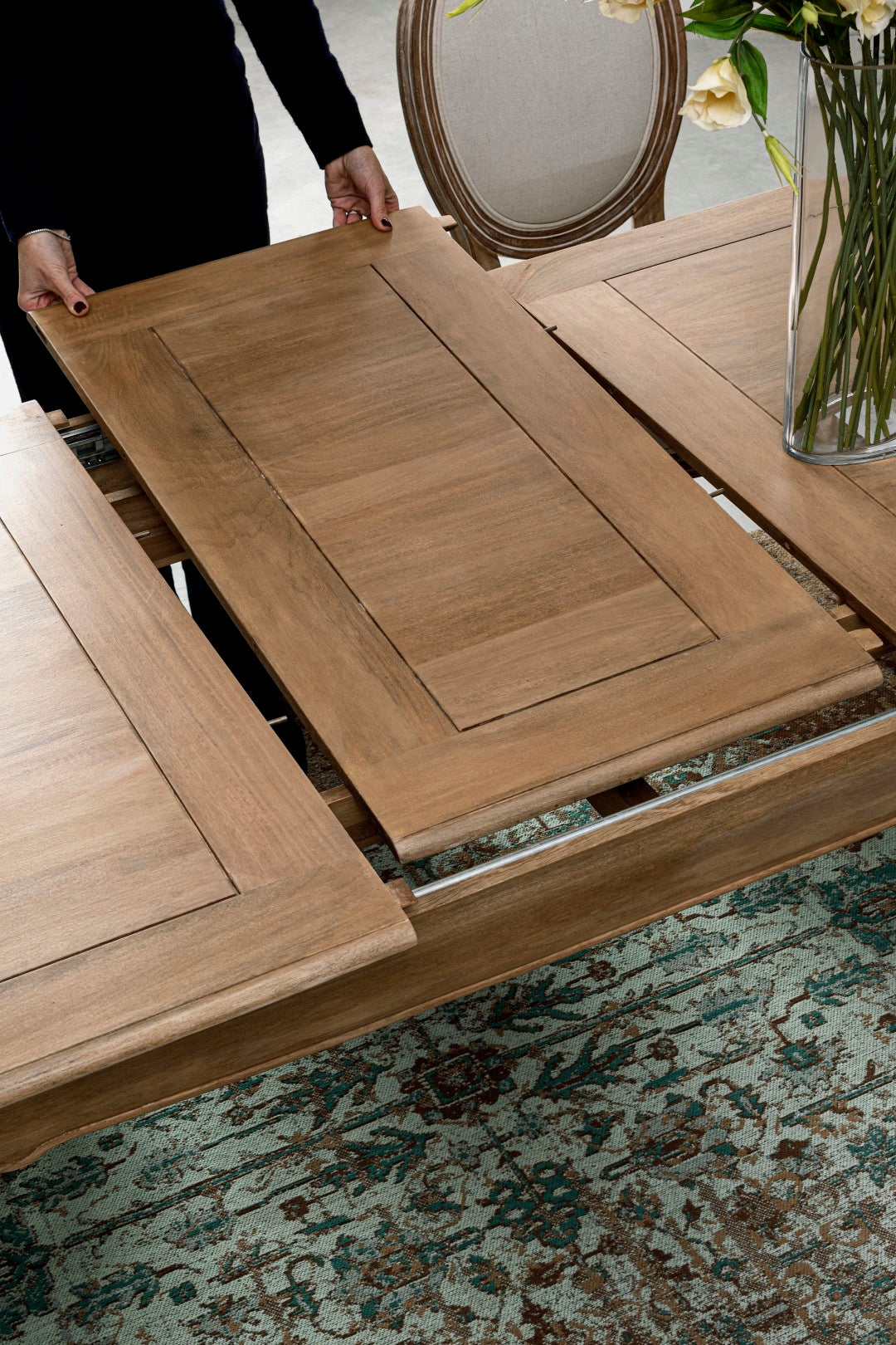 Con una dimensione di partenza di 180 x 90 cm, "Domitille" può essere esteso fino a 225 cm grazie al pratico meccanismo di allungamento, offrendo spazio aggiuntivo per ospitare fino a 8-10 persone. Questa funzionalità lo rende ideale sia per l'uso quotidiano che per cene più numerose o eventi speciali.
