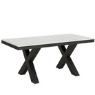 L'estensione del tavolo avviene in modo semplice e intuitivo: basta aprire la parte centrale del tavolo estraendo le sezioni aggiuntive, che possono essere fissate stabilmente per creare una superficie più ampia.