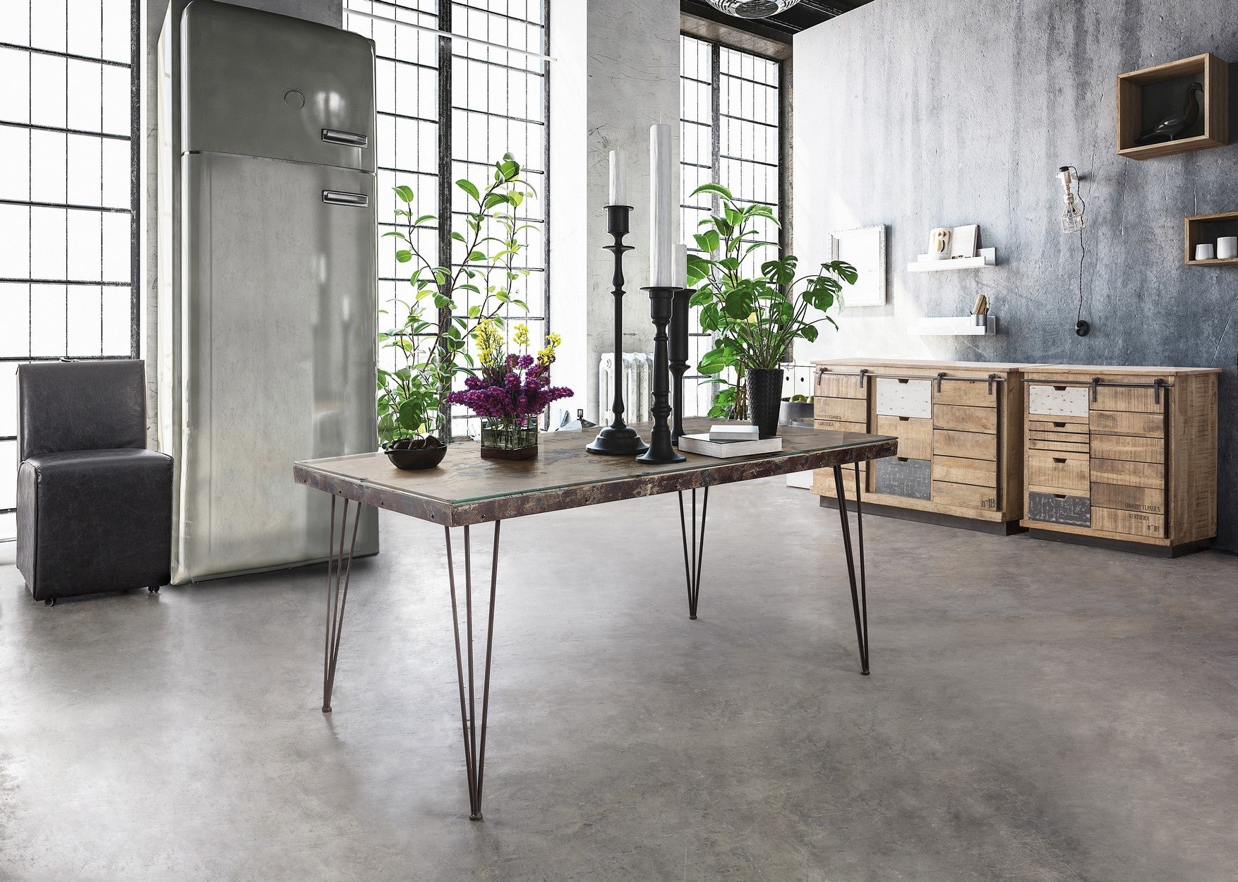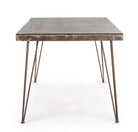 La struttura del tavolo è realizzata in acciaio con finitura anticato, che dona un aspetto robusto e industriale, ma allo stesso tempo elegante. Il look anticato dell'acciaio aggiunge un tocco vintage e distintivo, garantendo allo stesso tempo resistenza e stabilità.