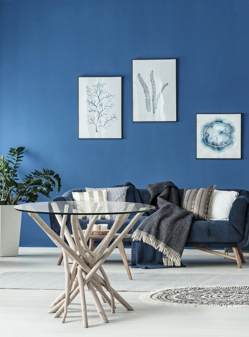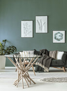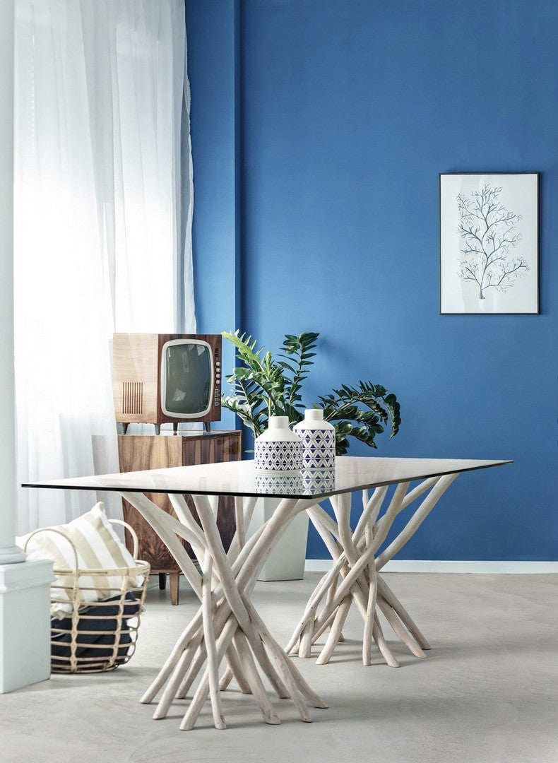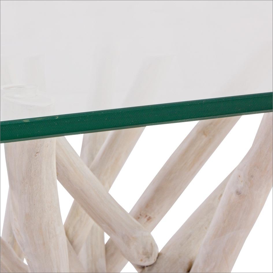 Tavolo "C-V Sahel", con gambe in rami di teak, piano in vetro temperato, stile moderno