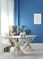 Il tavolo "C-V Sahel" di Bizzotto è sostenuto da rami di teak sbiancato con finitura a base di nitrocellulosa.