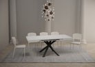L'estensione del tavolo avviene in modo semplice e intuitivo: basta aprire la parte centrale del tavolo estraendo le sezioni aggiuntive, che possono essere fissate stabilmente per creare una superficie più ampia.