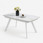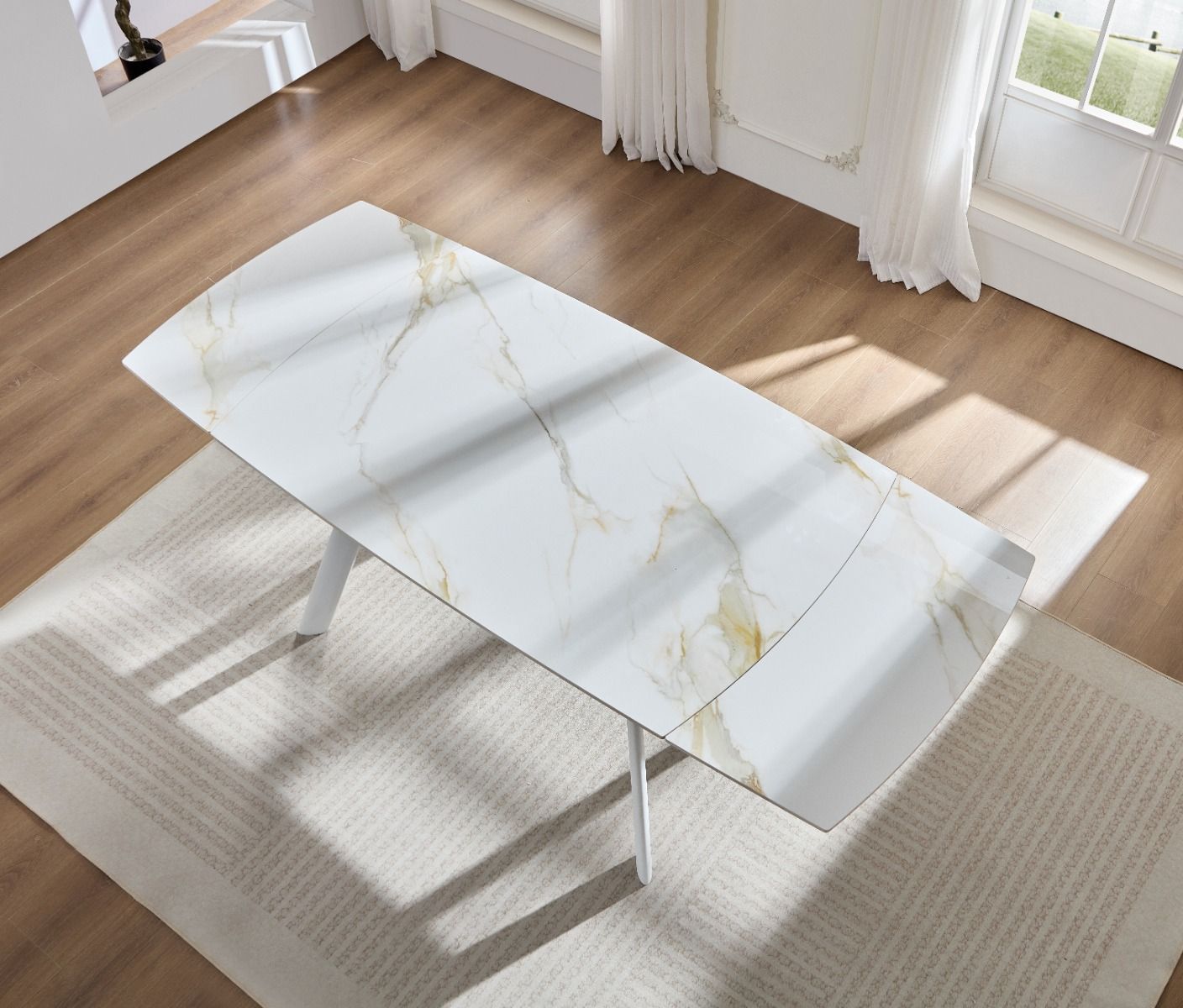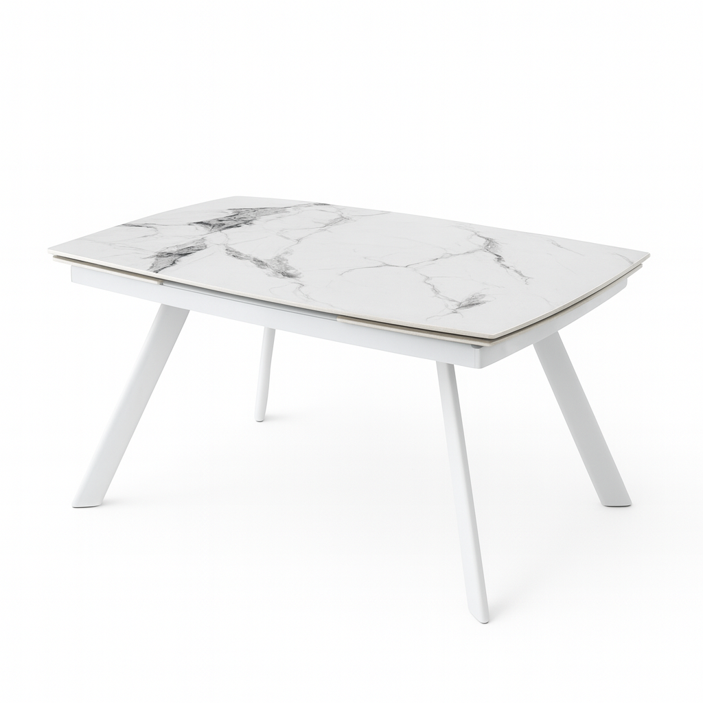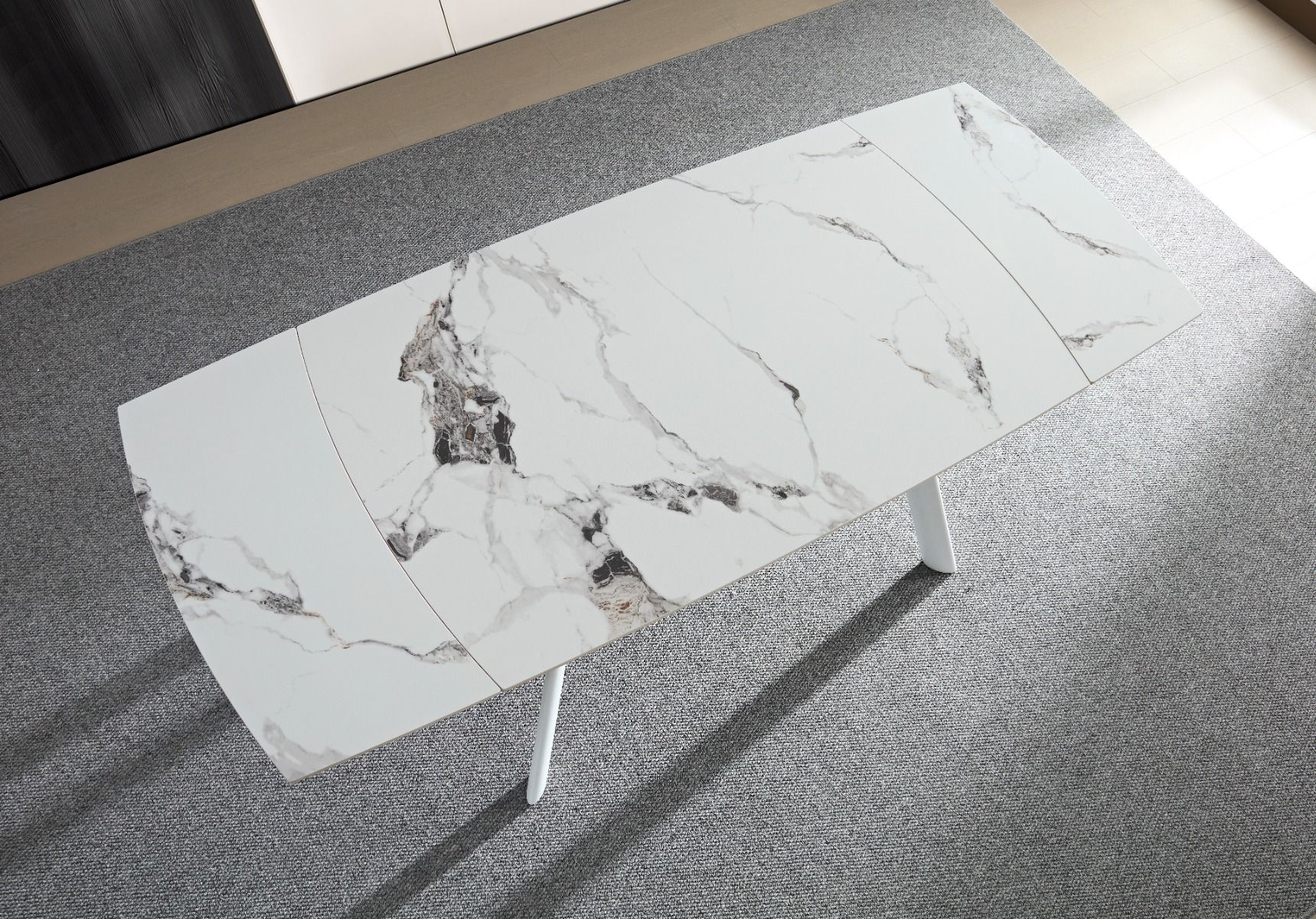 Tavolo "Deneb" con gambe e piano in ceramica effetto marmo, design moderno, 140/210 x 110 x h 75 cm