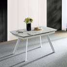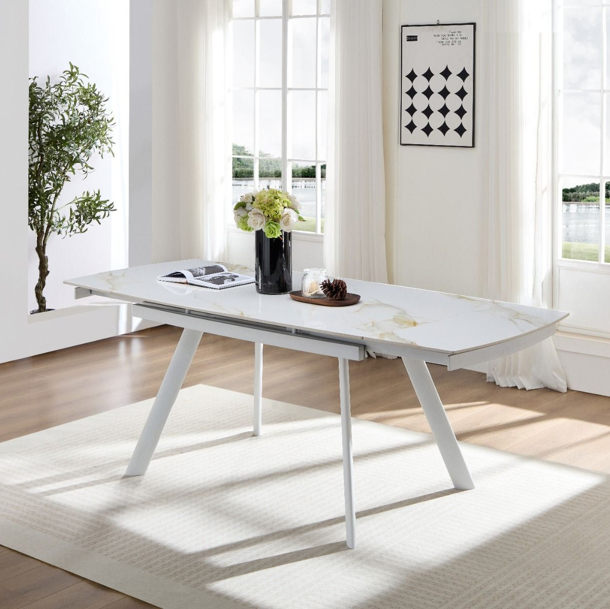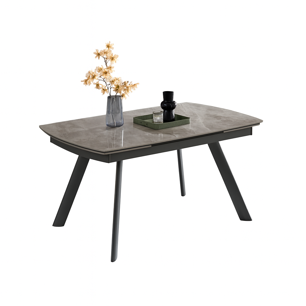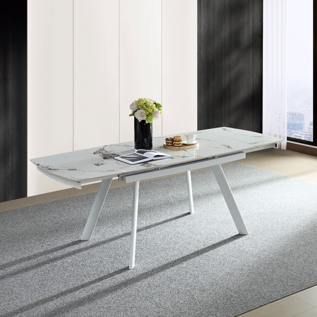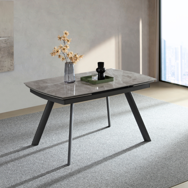 Tavolo "Deneb" con gambe e piano in ceramica effetto marmo, design moderno, 140/210 x 110 x h 75 cm