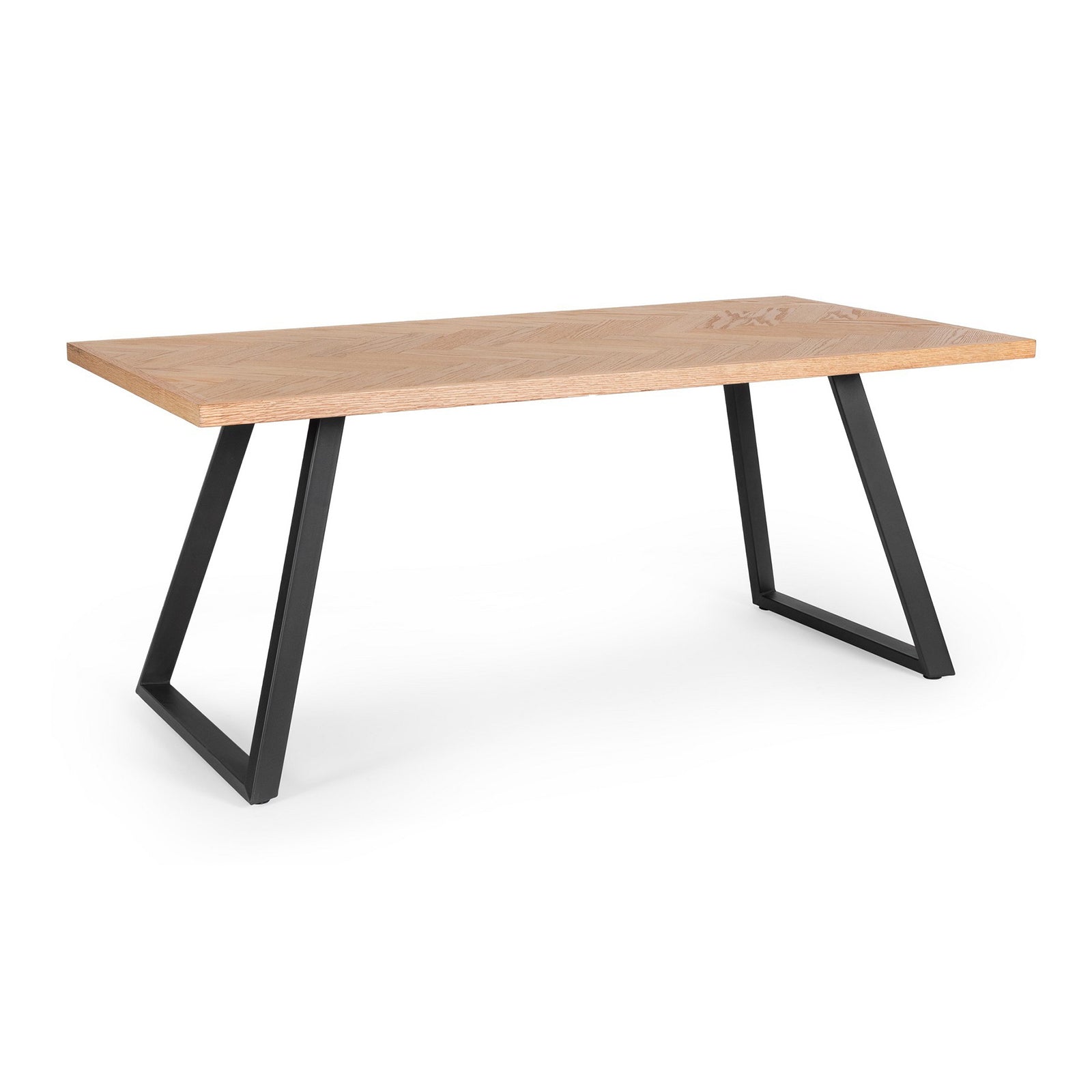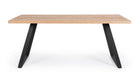 Le dimensioni generose di 180 x 90 x 76 cm forniscono uno spazio ampio e comodo per cene, riunioni o attività quotidiane. Il piano in MDF impiallacciato offre un aspetto raffinato, con le venature che aggiungono un tocco di naturalezza. Le gambe in acciaio contribuiscono alla stabilità e aggiungono un elemento contemporaneo.