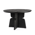 La finitura nera esalta le naturali venature del legno di abete, conferendo al tavolo un aspetto raffinato e resistente, perfetto per l'uso quotidiano.