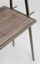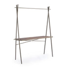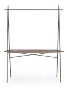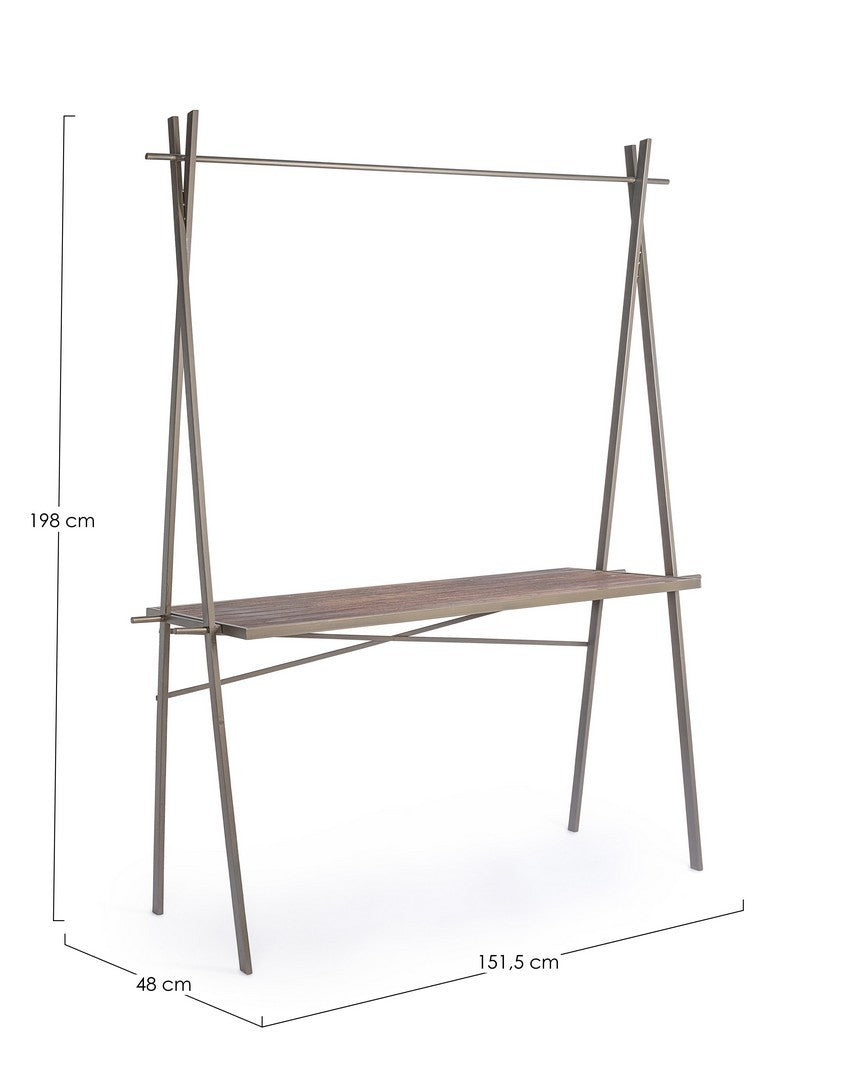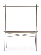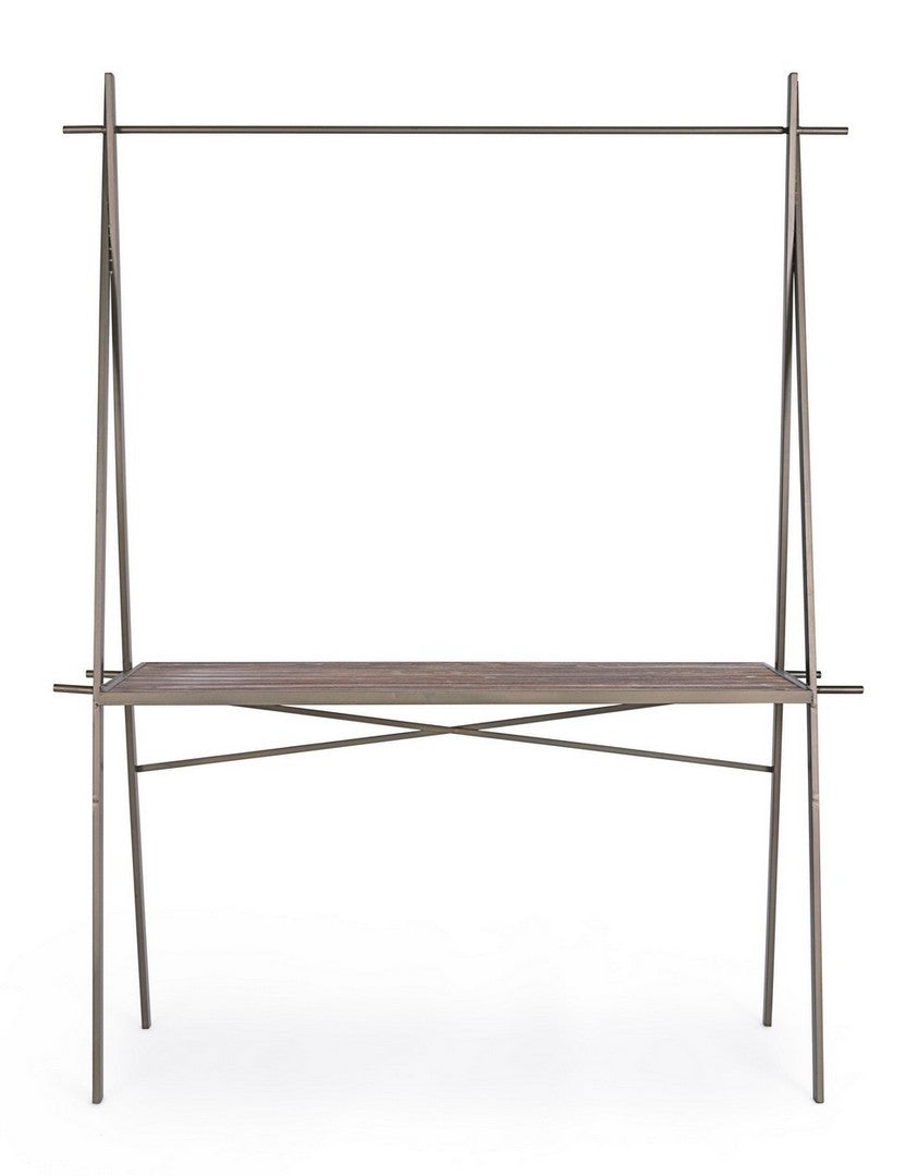 Tavolo espositore con ripiano rettangolare in legno di abete, struttura e tetto in acciaio