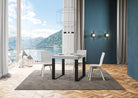 L'estensione del tavolo avviene in modo semplice e intuitivo: basta aprire la parte centrale del tavolo estraendo le sezioni aggiuntive, che possono essere fissate stabilmente per creare una superficie più ampia.
