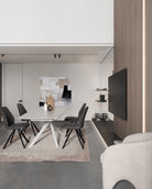 Il tavolo da pranzo allungabile "Joakim" è un arredo moderno e versatile, progettato per offrire funzionalità e stile in una sala da pranzo contemporanea. Realizzato con una solida struttura in acciaio, garantisce resistenza e durabilità, assicurando stabilità anche durante gli usi più intensi.