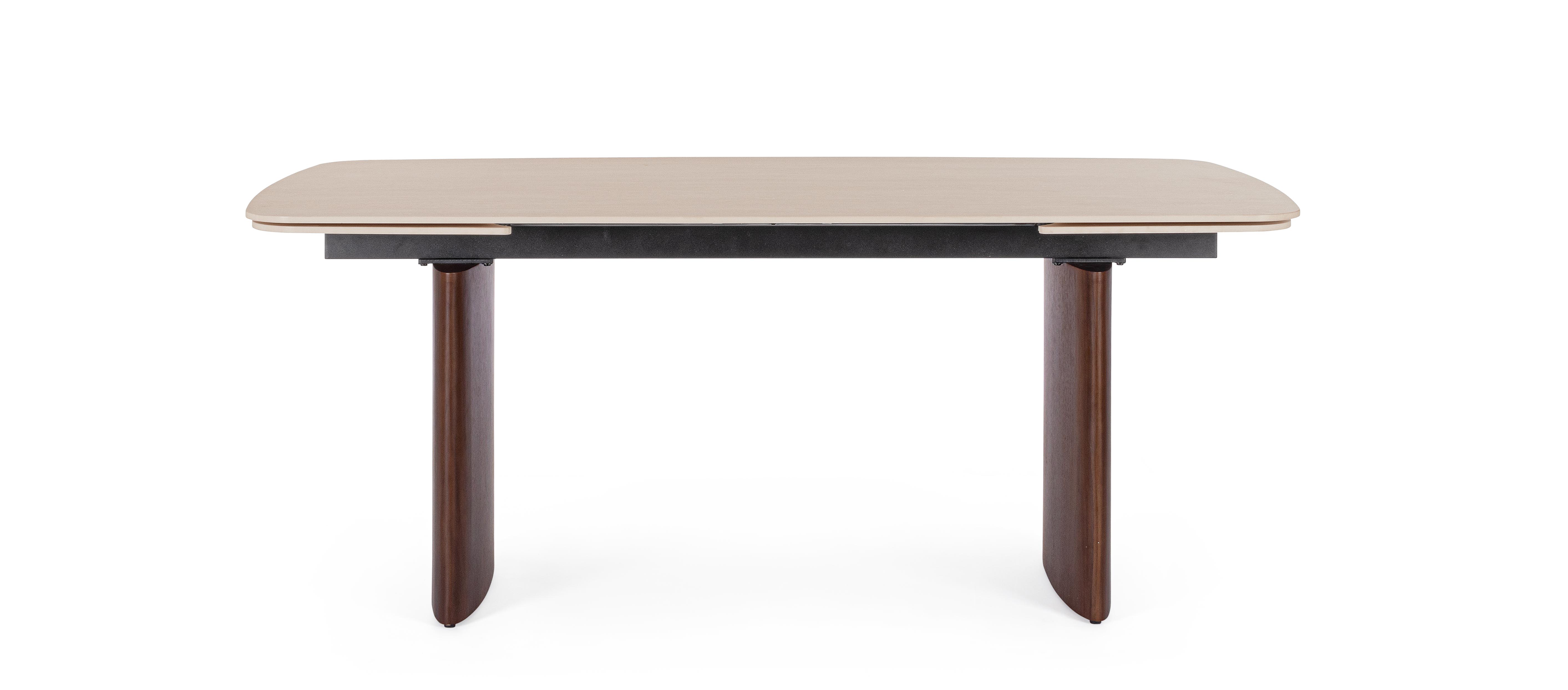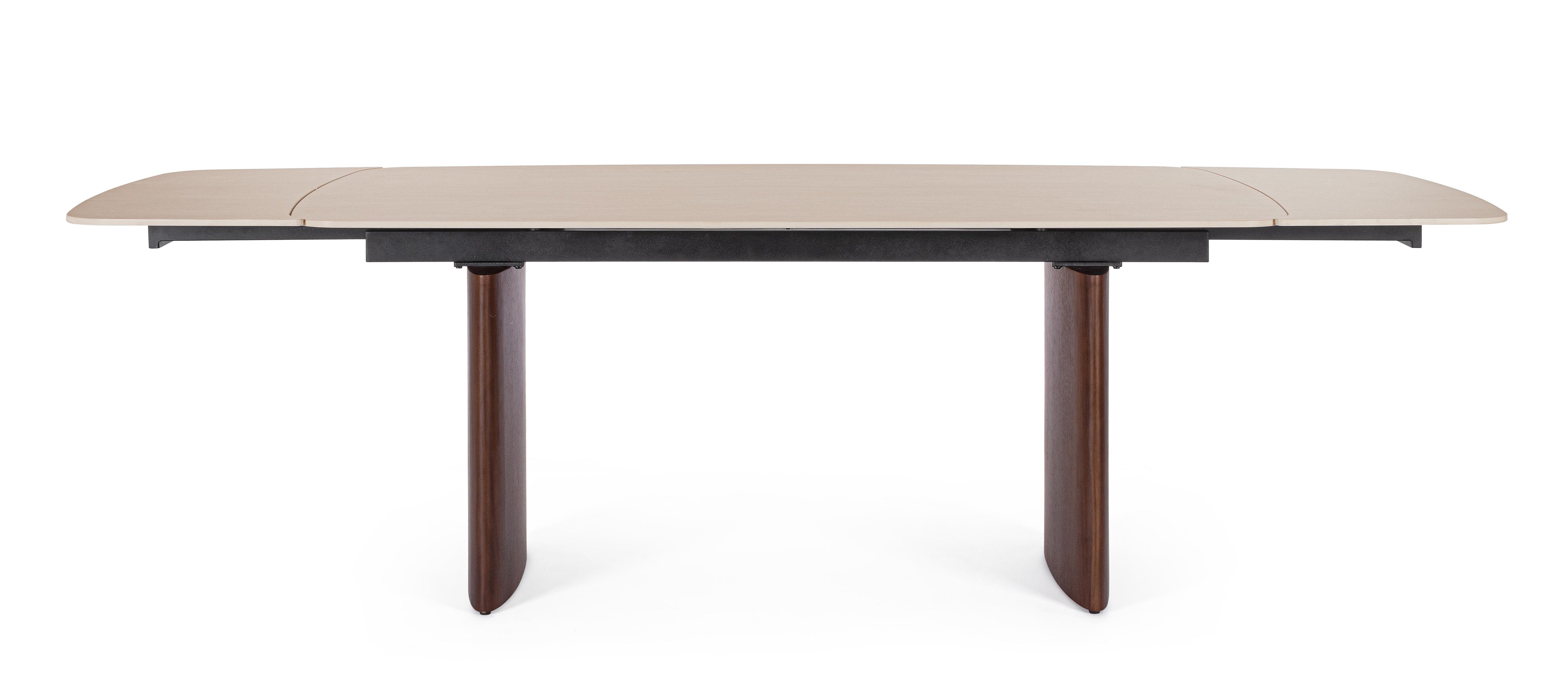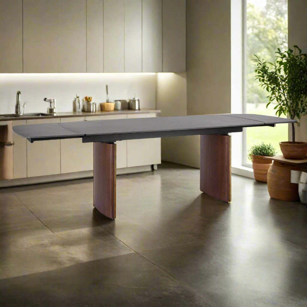 Il tavolo da pranzo allungabile "Mailis" combina estetica moderna e funzionalità, offrendo un arredo sofisticato per la tua sala da pranzo. Il piano è realizzato in gres porcellanato, un materiale rinomato per la sua elevata resistenza a graffi, calore e macchie, garantendo una superficie durevole e facile da pulire, perfetta per un uso quotidiano intenso.