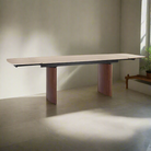Il design lineare e contemporaneo si adatta perfettamente a interni moderni e minimalisti, mentre la struttura robusta in acciaio assicura stabilità e durabilità nel tempo. La combinazione di gres porcellanato e acciaio crea un look raffinato che conferisce eleganza e robustezza al tavolo.