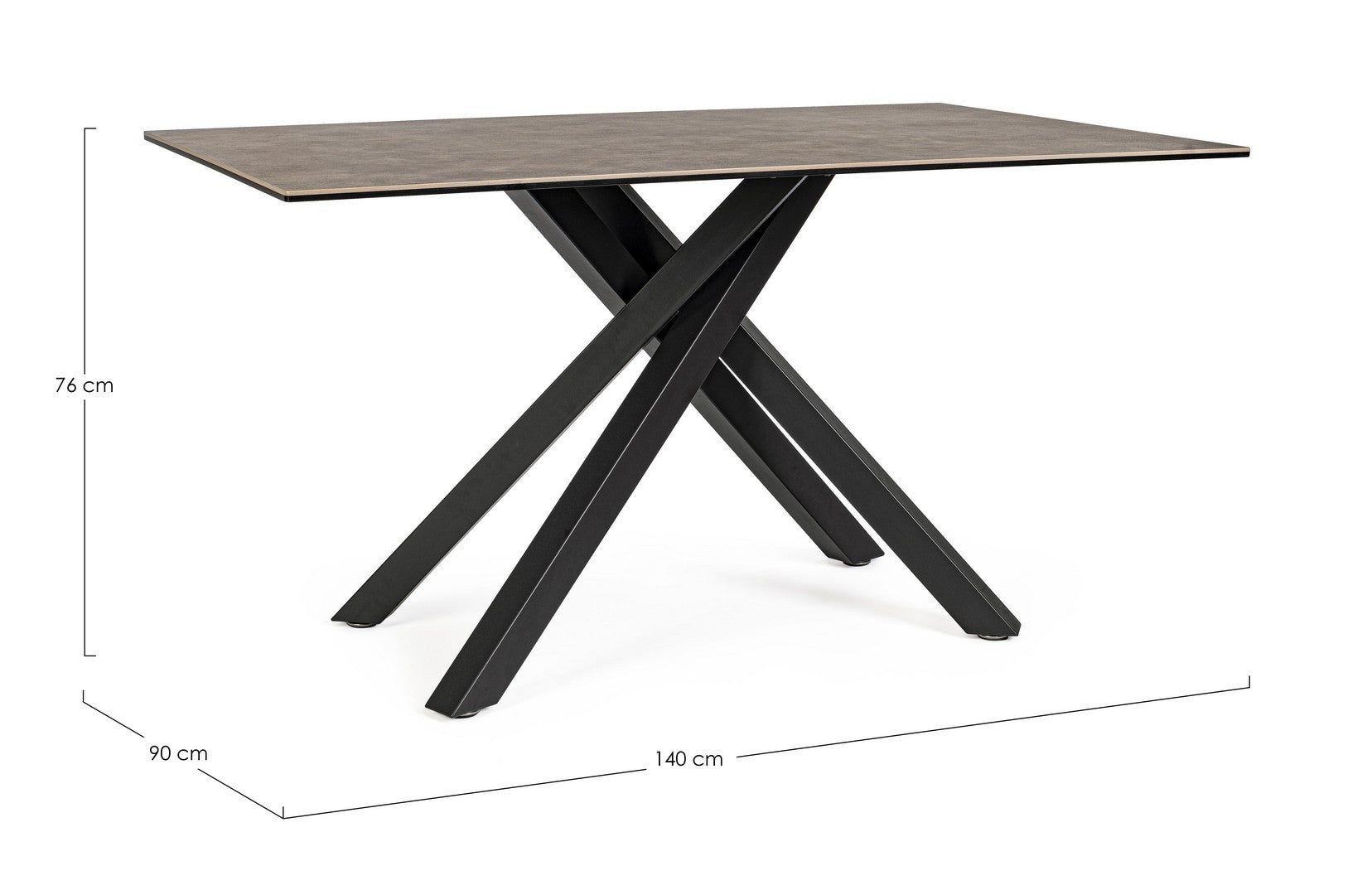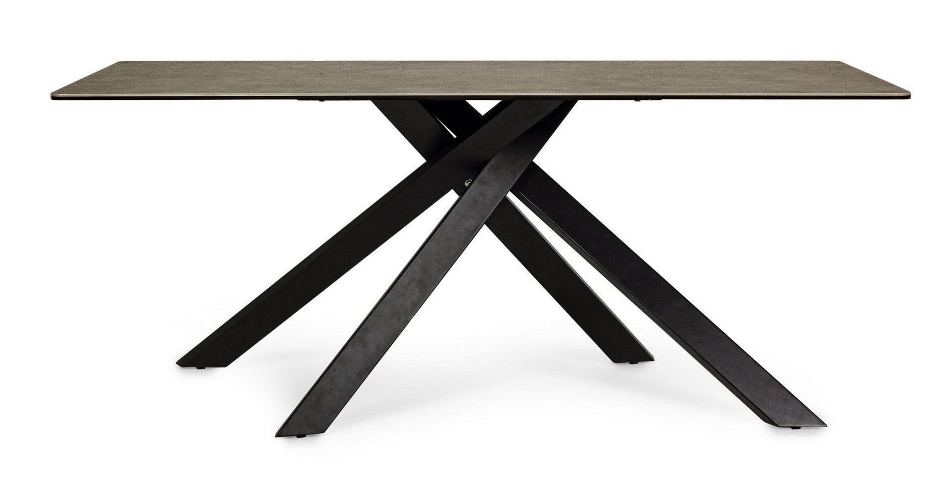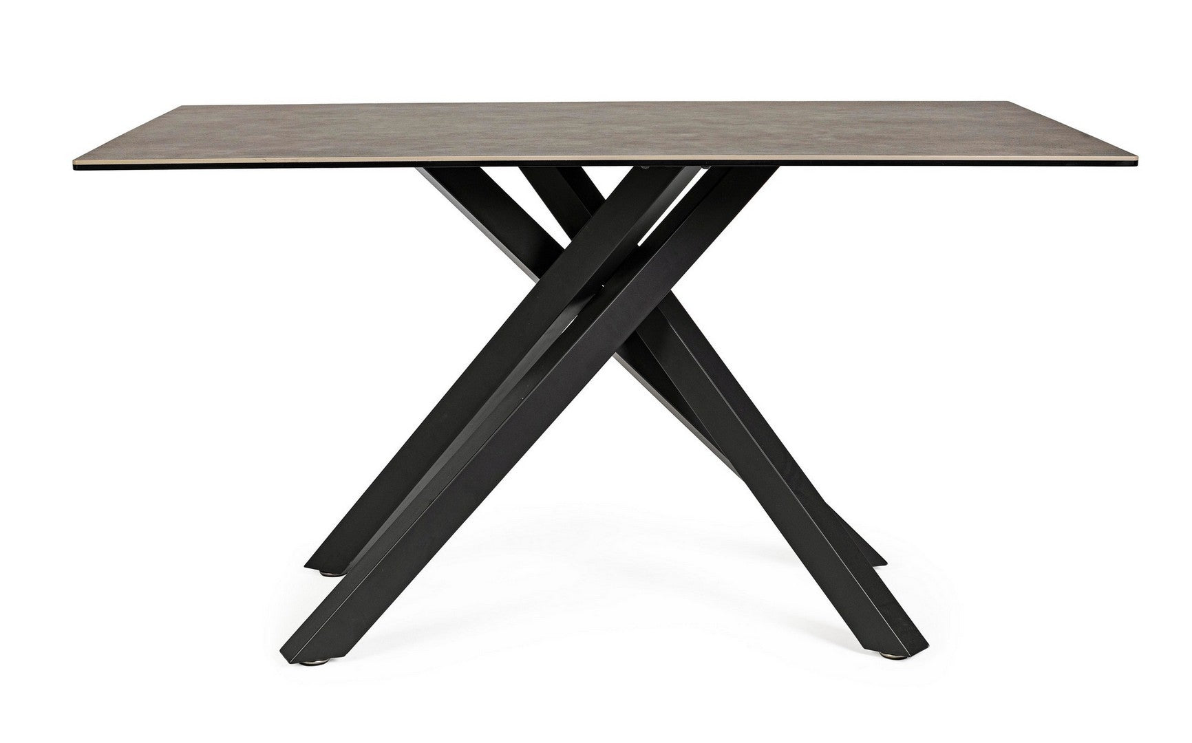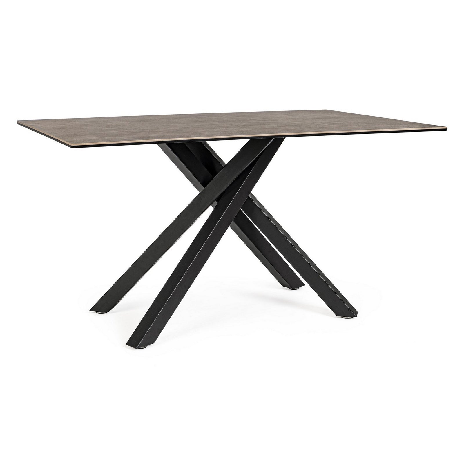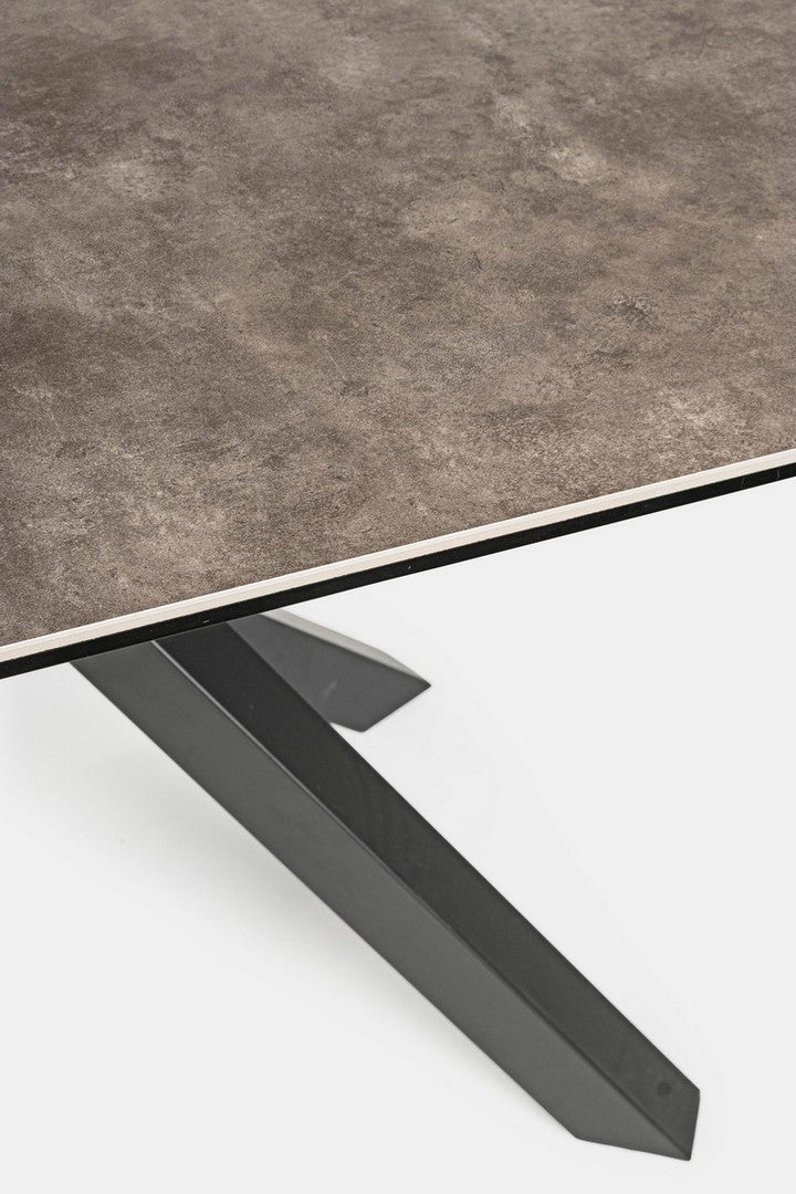 Tavolo Messier struttura in acciaio verniciato, piano in ceramica con supporto in vetro temperato
