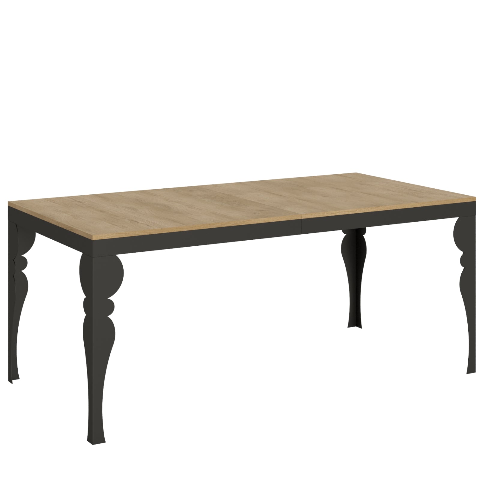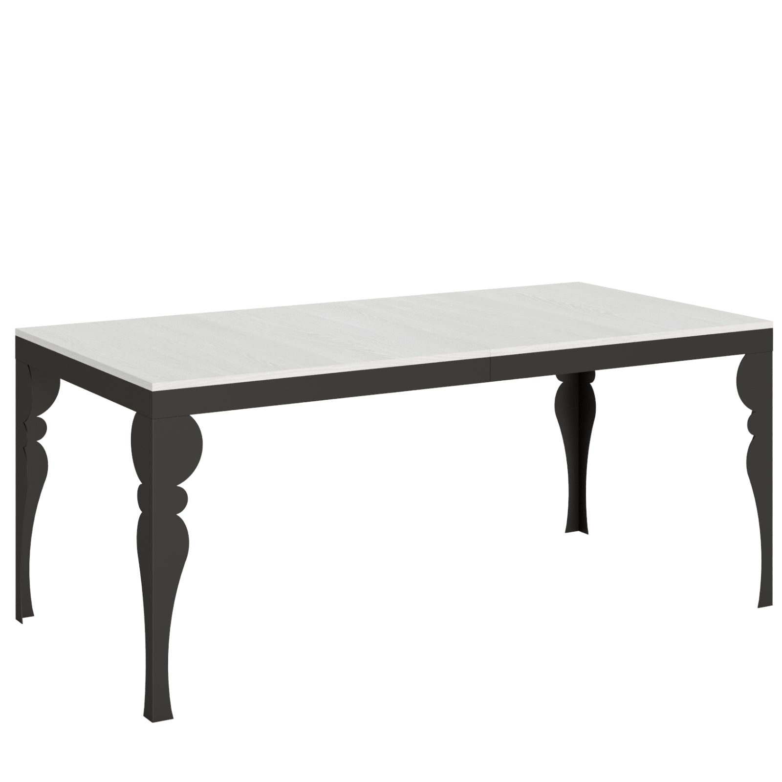 L'estensione del tavolo avviene in modo semplice e intuitivo: basta aprire la parte centrale del tavolo estraendo le sezioni aggiuntive, che possono essere fissate stabilmente per creare una superficie più ampia.