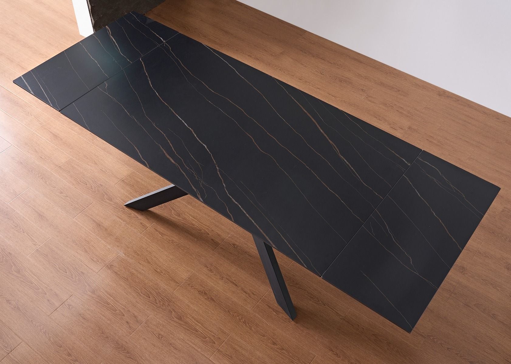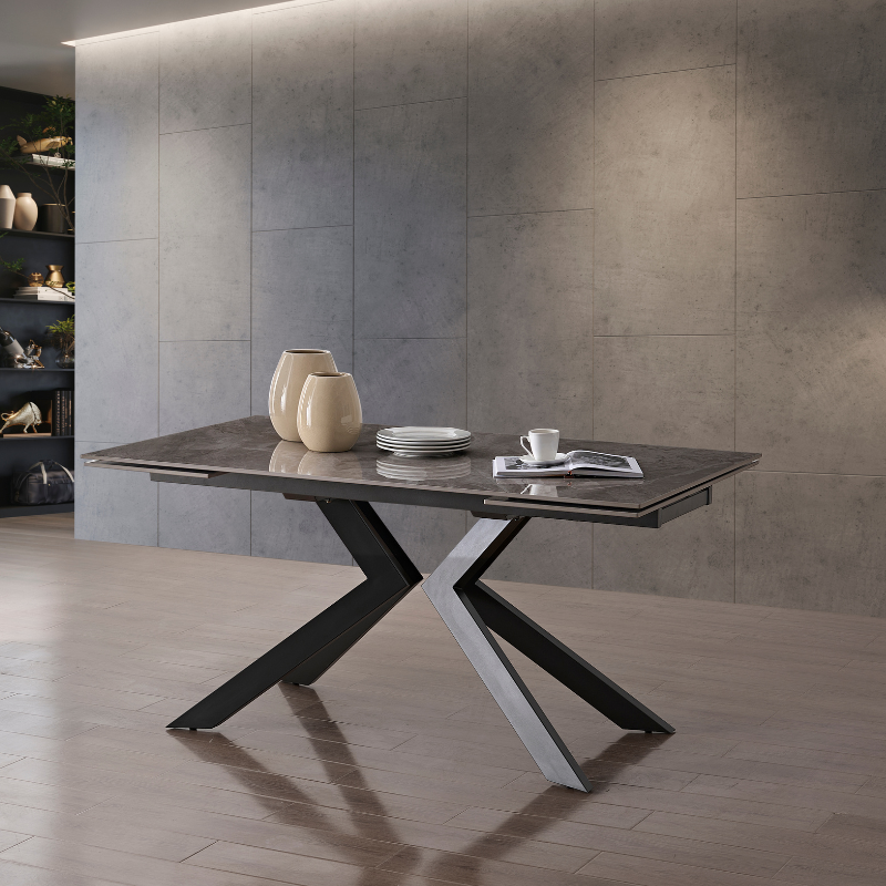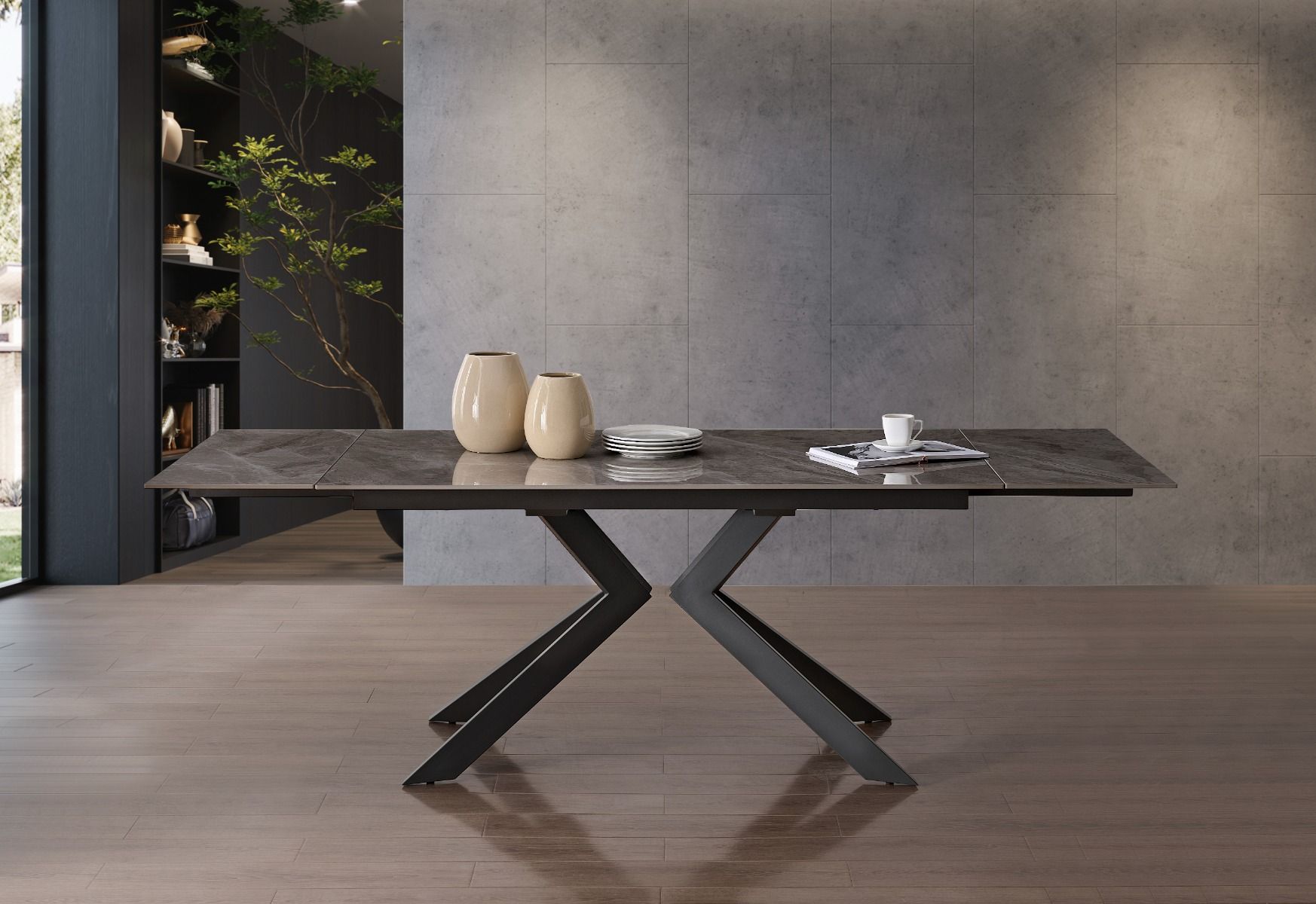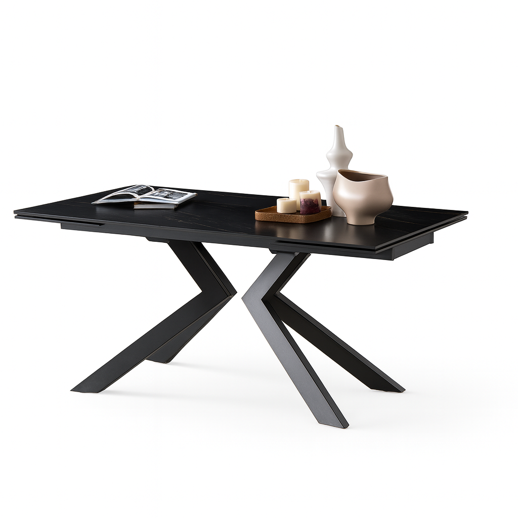 Tavolo "Pollux" con gambe in ferro e piano in pietra sinterizzata 160/240 x 110 x h 75 cm