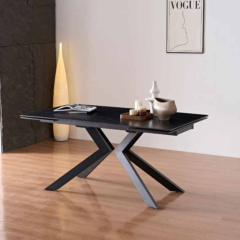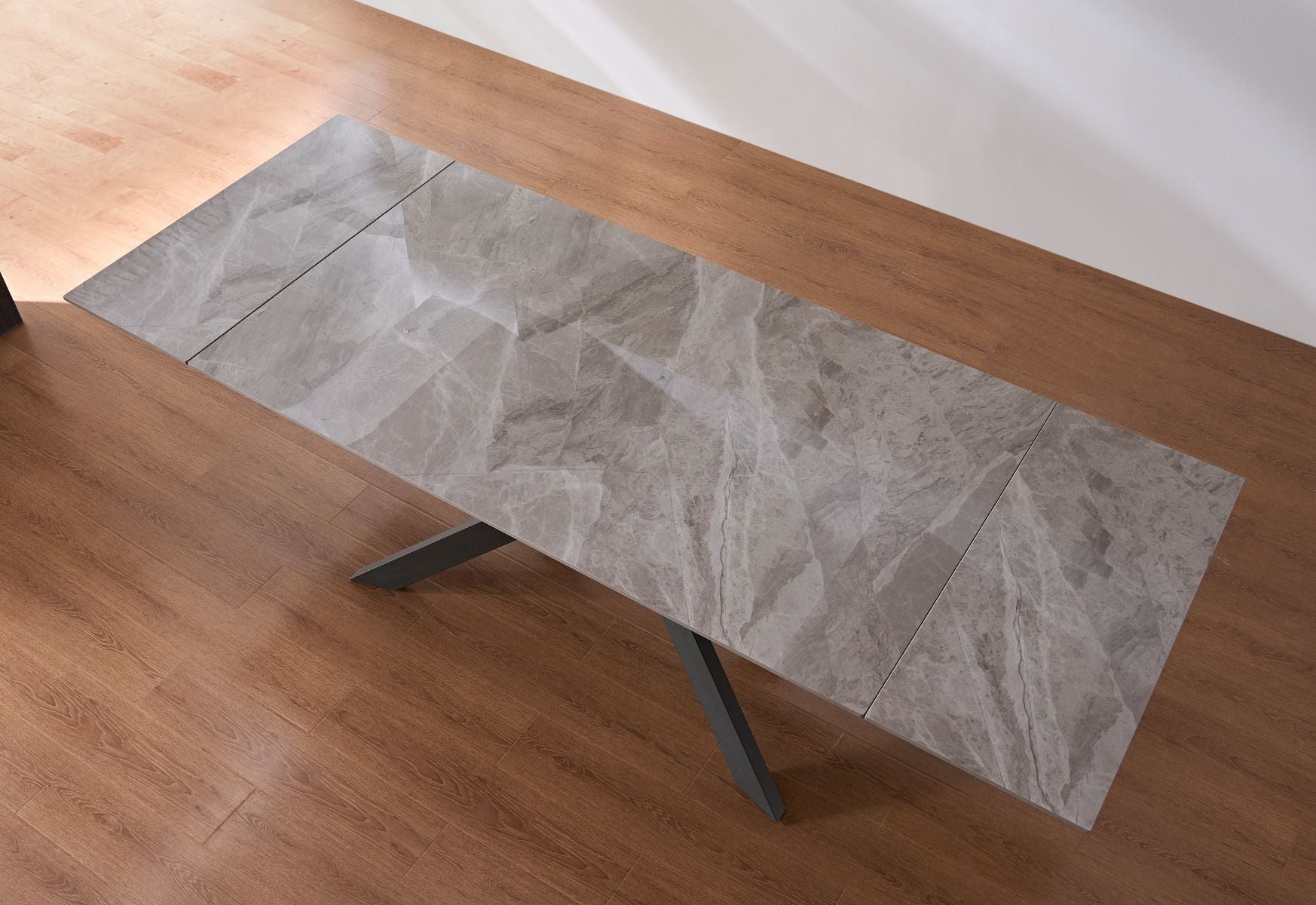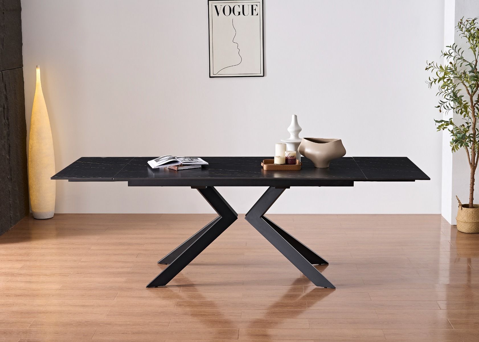 Tavolo "Pollux" con gambe in ferro e piano in pietra sinterizzata 160/240 x 110 x h 75 cm