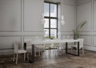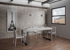 L'estensione del tavolo avviene in modo semplice e intuitivo: basta aprire la parte centrale del tavolo estraendo le sezioni aggiuntive, che possono essere fissate stabilmente per creare una superficie più ampia.