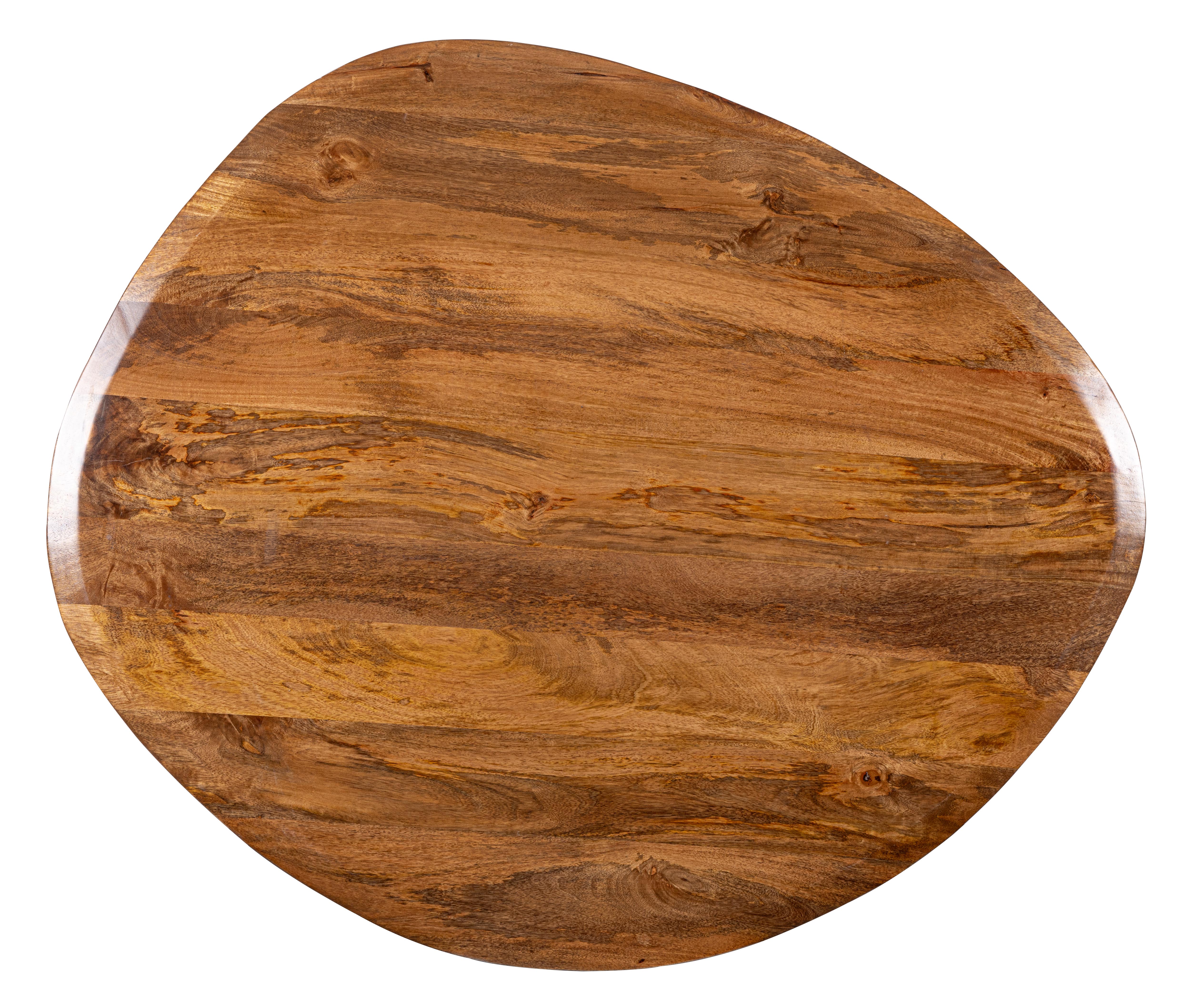 Le gambe e la struttura del tavolo sono realizzate in legno mango, conferendo al tavolo un aspetto rustico e naturale. La verniciatura a base di nitrocellulosa garantisce una finitura resistente e durevole nel tempo.