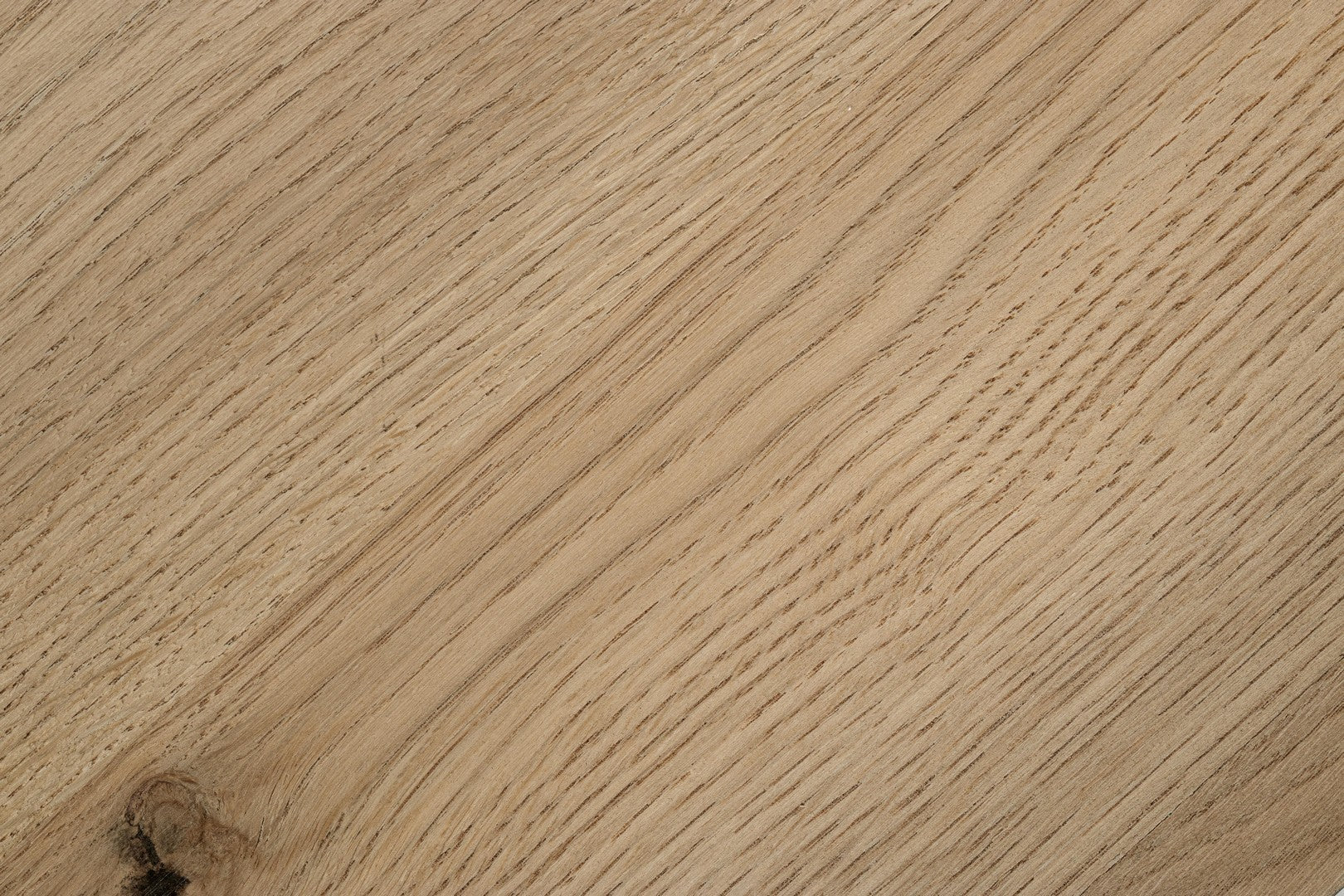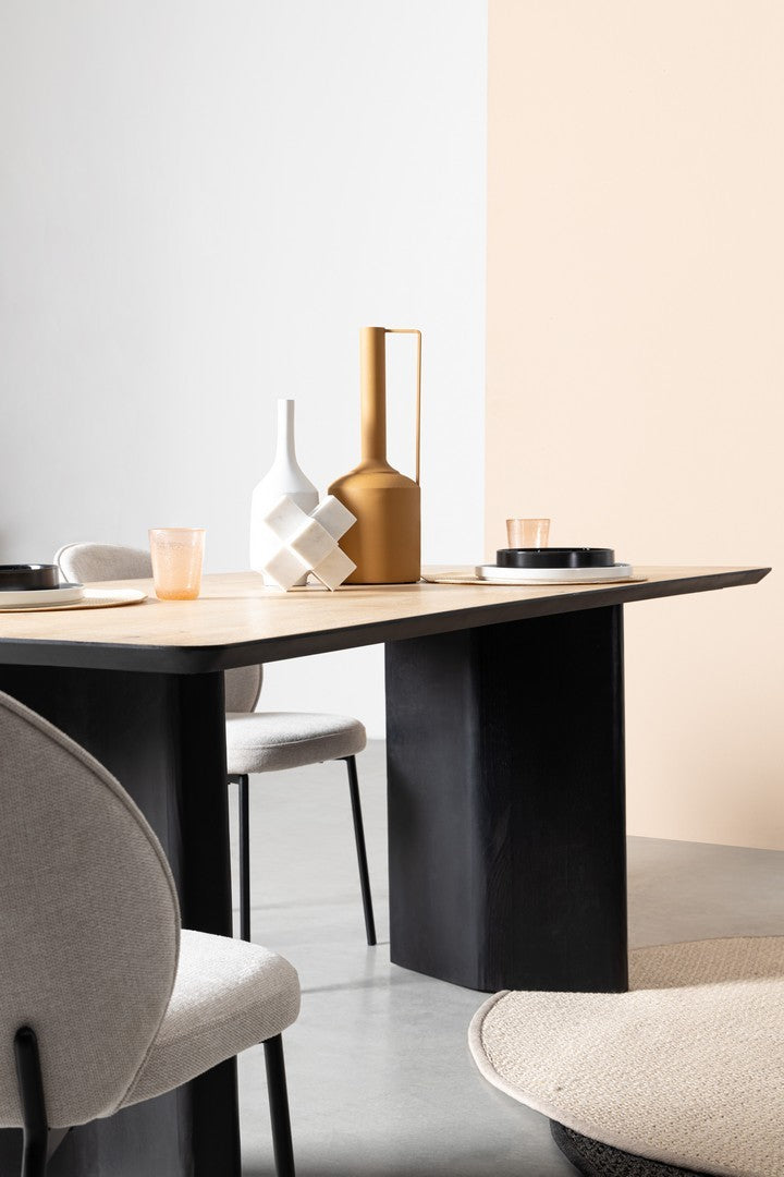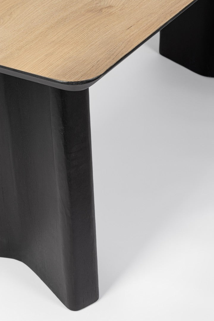 La superficie in MDF impiallacciato rovere conferisce al tavolo un aspetto caldo e naturale, con le caratteristiche venature del legno che aggiungono un tocco di autenticità. Il design pulito e moderno si presta a vari stili di arredamento, dalla contemporaneità al classico.